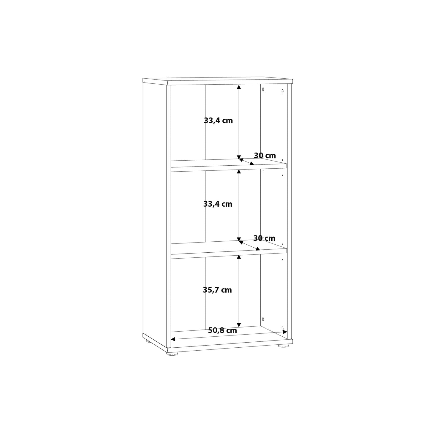 Essential Tall Narrow 2 Shelf Bookcase in Vintage Oak. Modern design with an old-wood vintage finish imitating natural wood grain. Wall mounting required (fittings included).