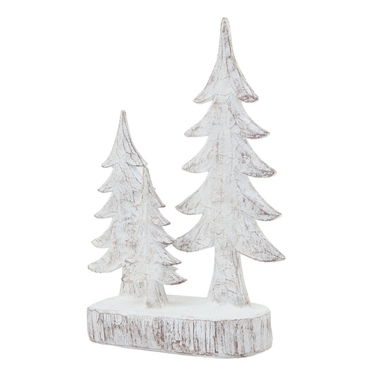 Carved Wood Effect Grey Small Snowy Tree