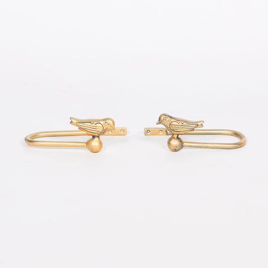 Gold Cast Iron Decorative Bird Curtain Holder Set