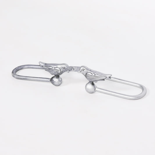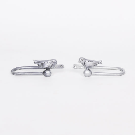 Silver Cast Iron Decorative Bird Curtain Holder Set