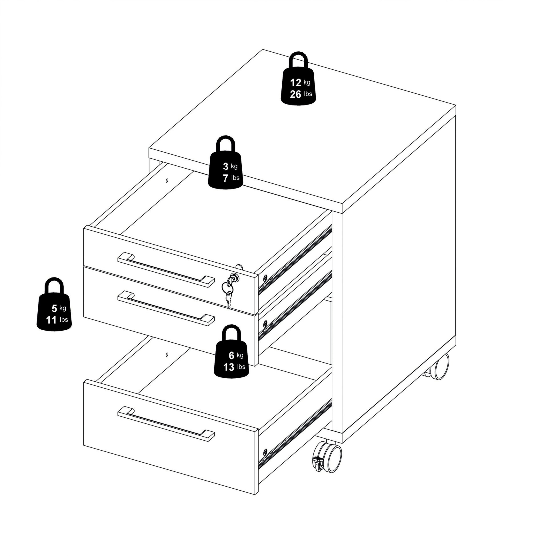 Function Plus Mobile File Cabinet 2 Drawers 1 Shelf