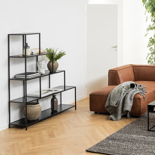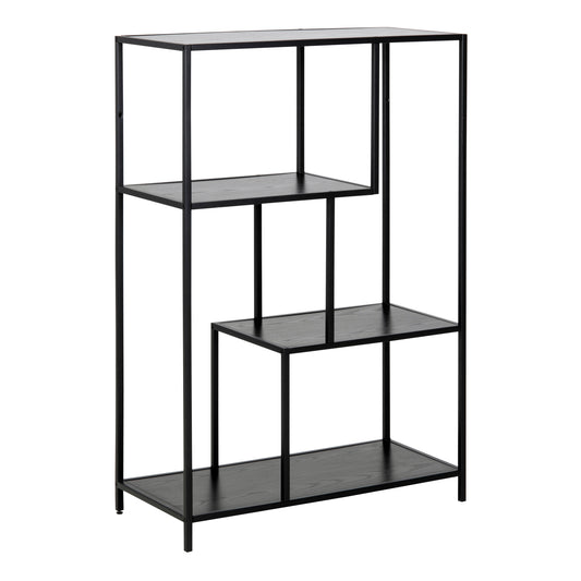 Jersey Concrete Effect Wood Veneer and Black Metal 4 Shelf Unit