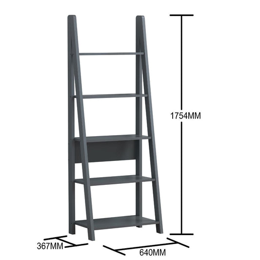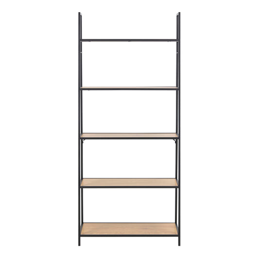Gallery Natural Wood Veneer and Black Metal 5 Shelf Ladder Unit