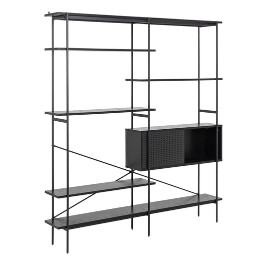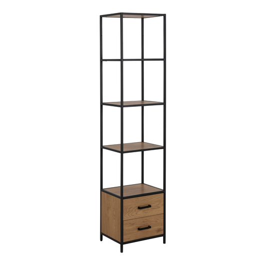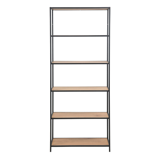 Gallery Natural Wood Veneer and Black Metal 5 Shelf Unit