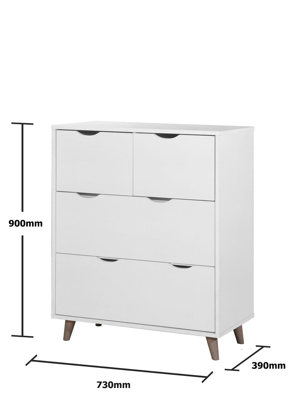 The Chest of Drawers has four drawers, an ideal storage solution for your bedroom, living room or dinning room.