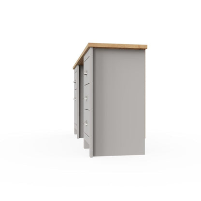 Full of presence, the Lisbon range in Grey and cascading Oak tops fills any room with warmth and comfort.