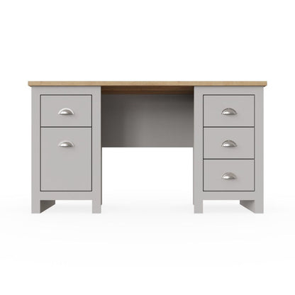 Our Double Pedestal Desk brings contemporary country charm to the workspace to make it a place you'll be happy to spend long hours in. Complete with four roomy drawers and a filing drawer make this highly practical desk a highly desirable item.