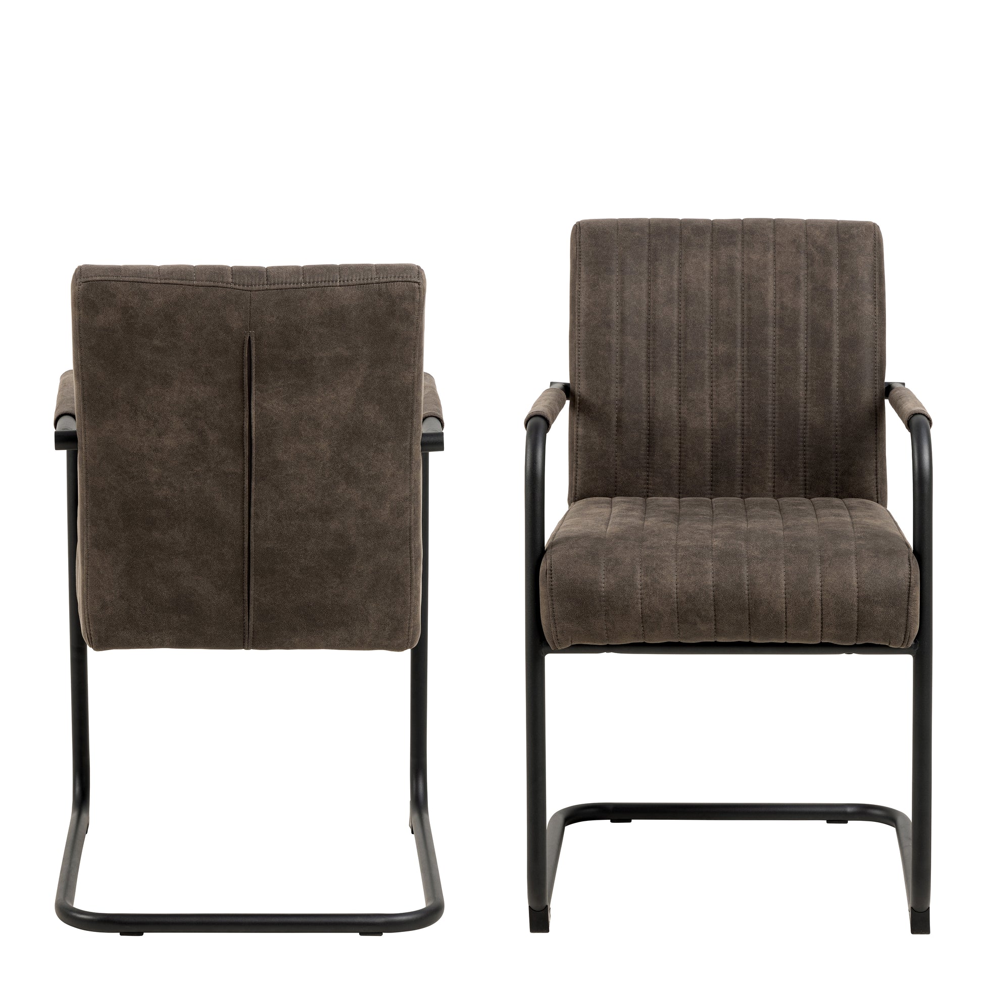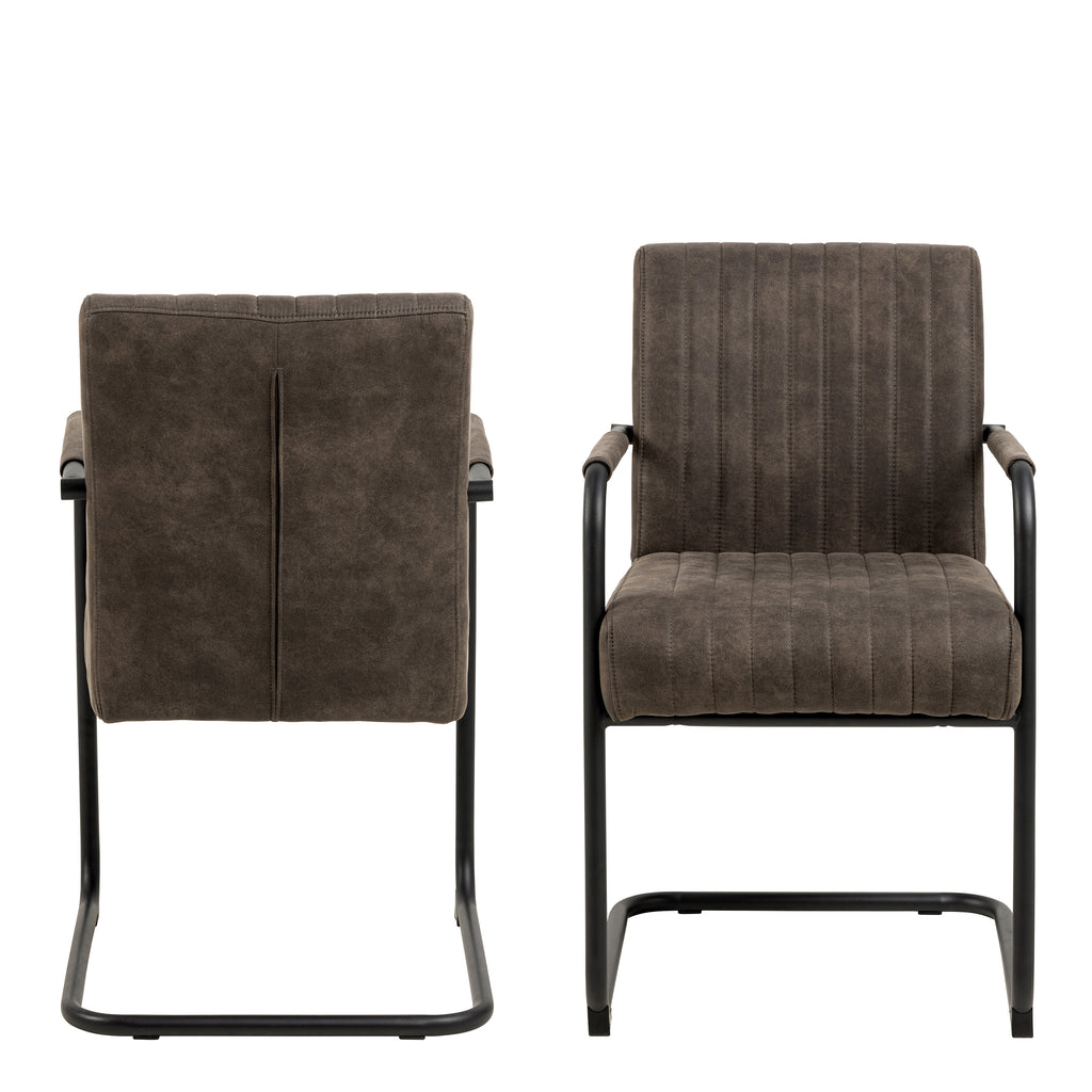 Infusing retro flair into your space, this dining chair with armrests promises to elevate any home's style. Its robust black swing metal base perfectly complements the anthracite microfiber fabric, which features a special coating for a raw, edgy appearance. Plus, the seat's pocket springs ensure lasting comfort during those post-dinner conversations.