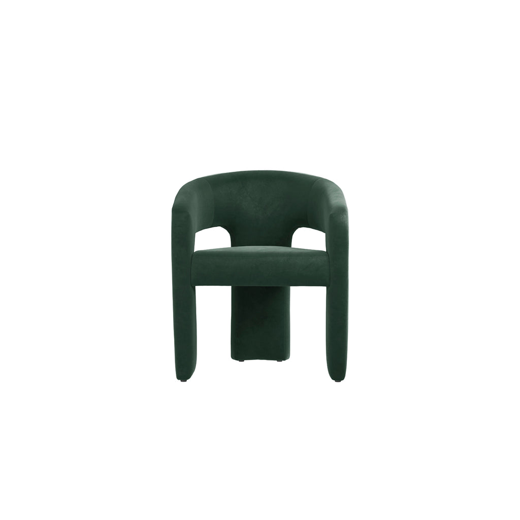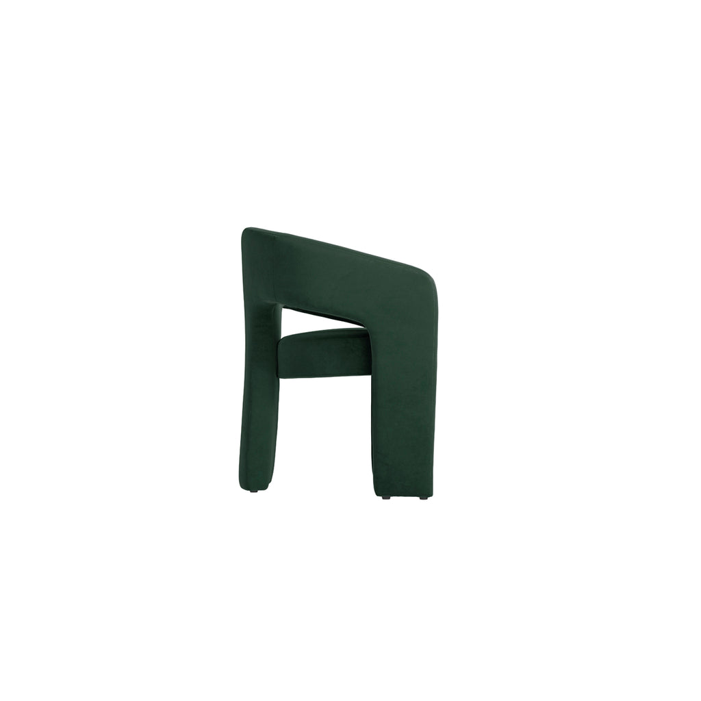 From the Curve collection, the Alba is a modern and stylish piece which comes in a comfortable and soft, forest green shade of velvet. The sleek design makes a fantastic addition to any dining setting, from modern and minimalist to chic and eclectic. Whether used as a set around a dining table or as a standalone accent chair, the Alba effortlessley elevates your space with its contemporary appeal.
