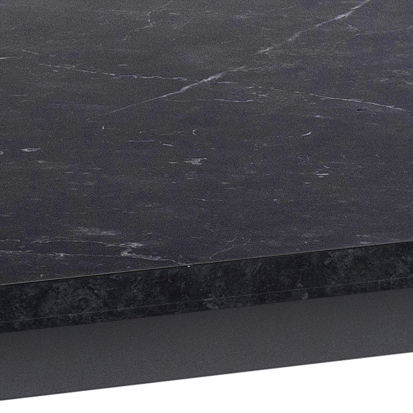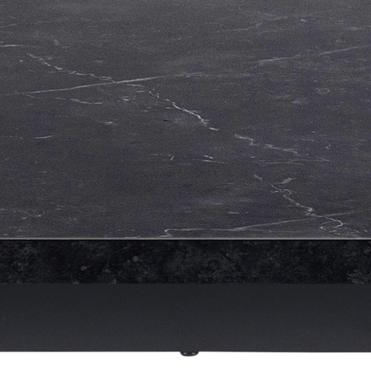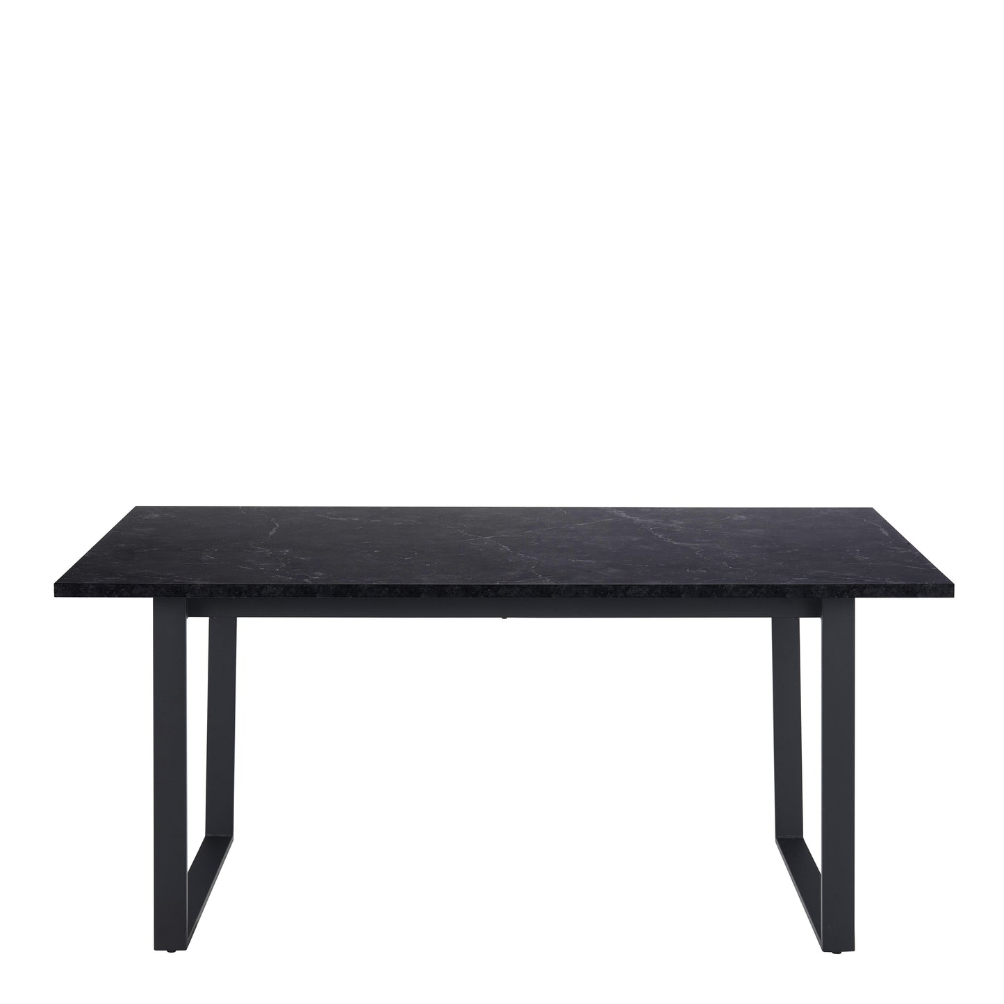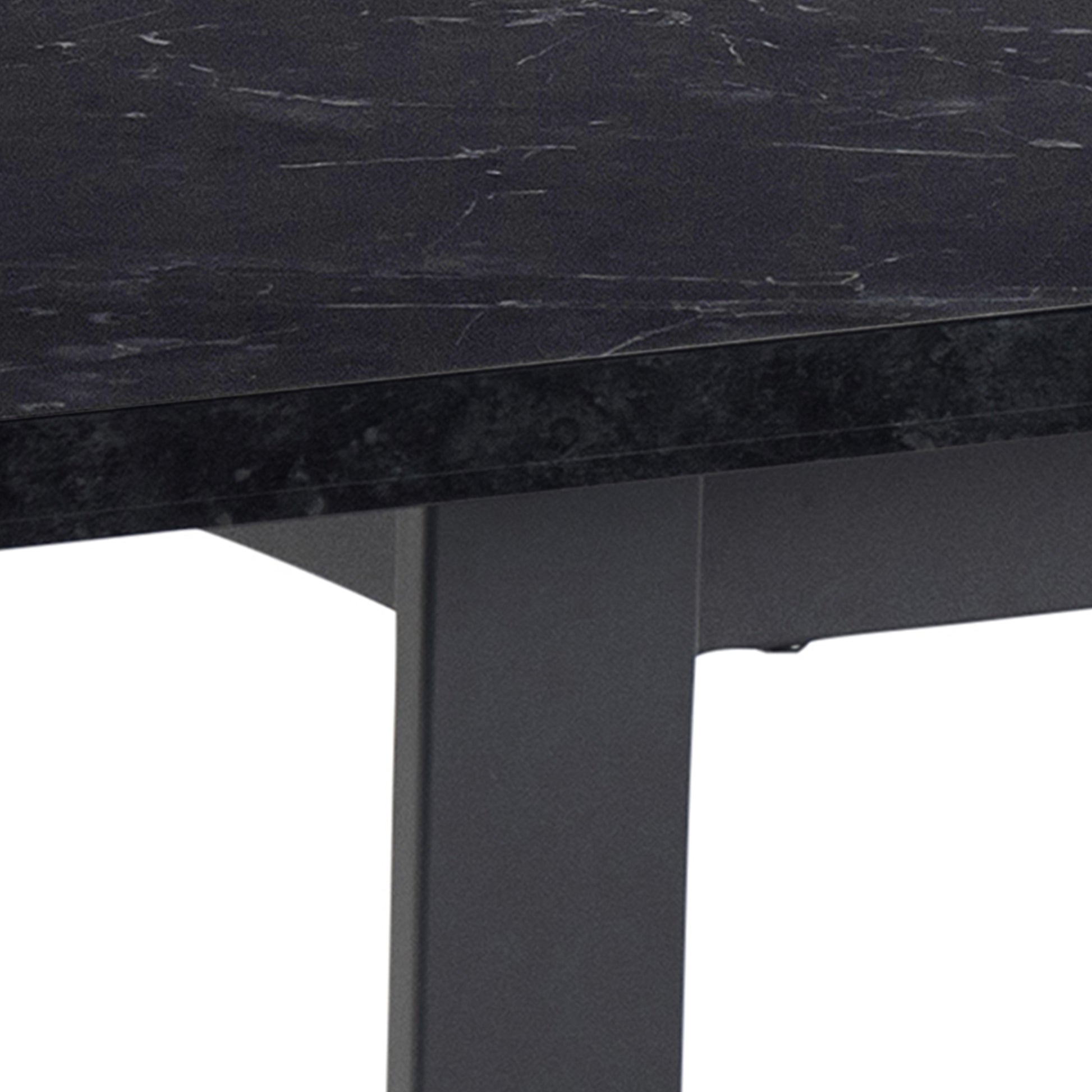 Customise your dining space with this contemporary table featuring a sleek black marble appearance. Crafted from metal and melamine, it offers both visual appeal and durability. Take note of the U-shaped metal legs, adding an industrial flair to its design.
