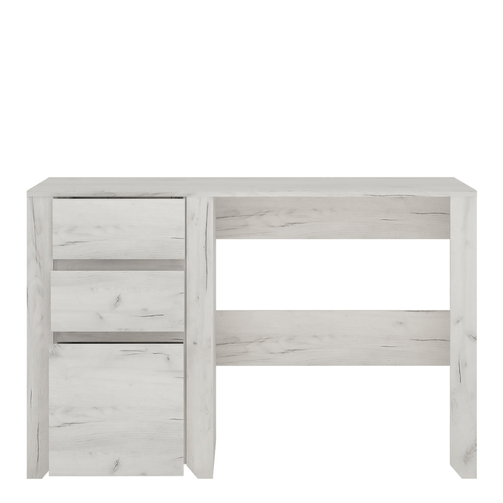 This beautifull bedroom collection is contemporay and stylish and suitable for all age groups, finished in a modern hard wearing white crafted Oak melamine. 60cm deep desktop area working surface, giving you plenty of space.