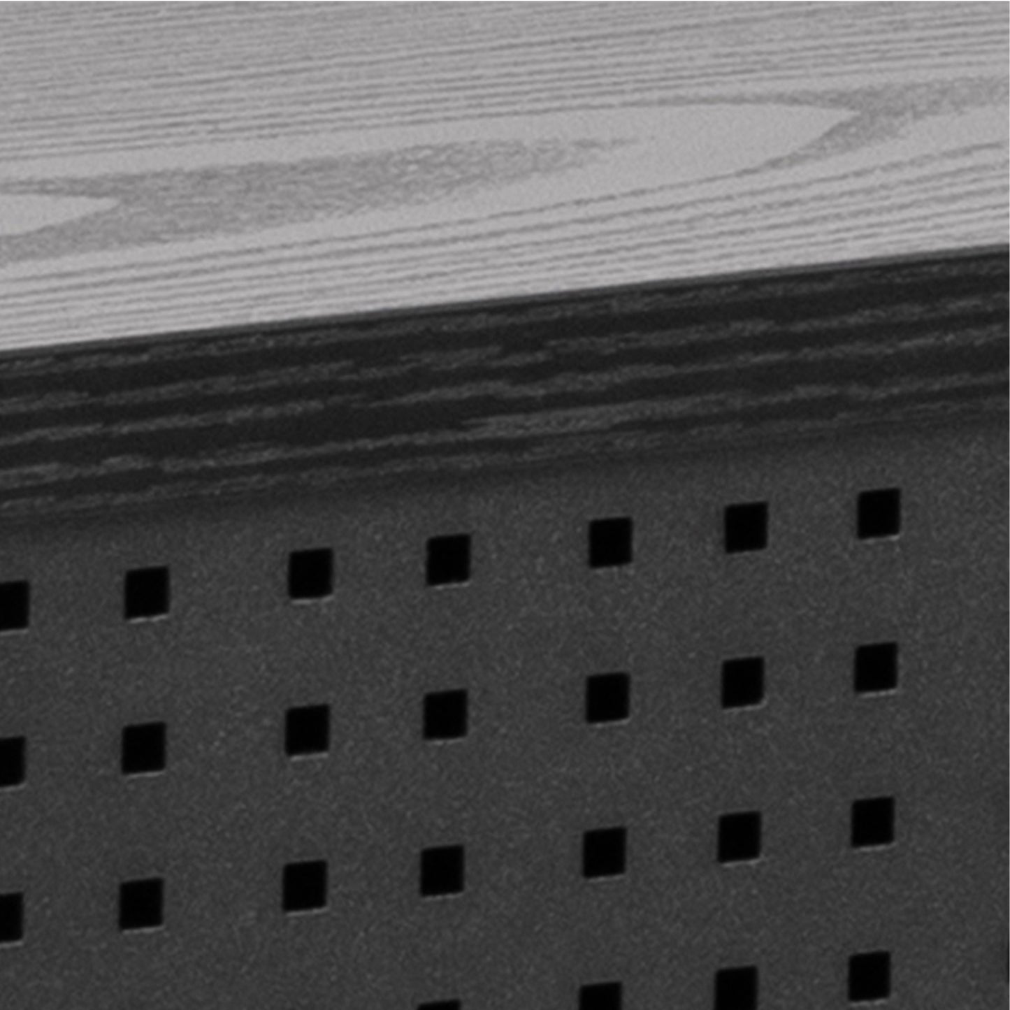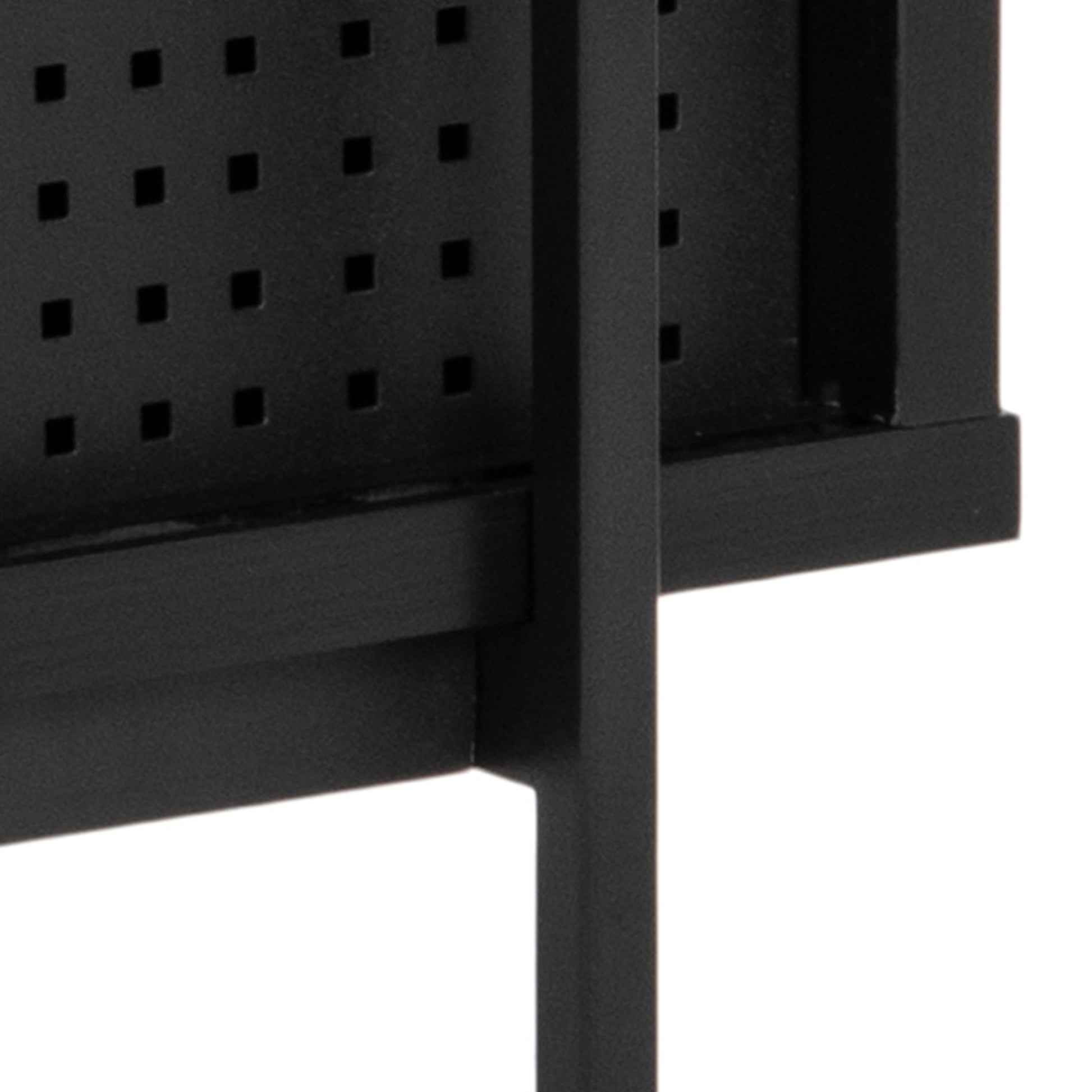Featuring clean lines and a lightweight design, this wall unit epitomizes contemporary living, seamlessly blending with any interior style. Supported by a powder-coated metal frame, the melamine shelves in a black ash finish provide both style and durability. Conceal belongings behind the sliding doors for a clutter-free space. Let this modern wall unit become the focal point of your living area.