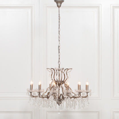 Indulge in opulence with our Antiqued Silver 12 Branch Shallow Cut Glass Chandelier. Crafted with intricate details and a vintage-inspired finish, this chandelier adds a touch of elegance to any space. The shallow cut glass adds a luxurious sparkle, illuminating your room with a warm glow. Elevate your home decor with this exclusive piece.