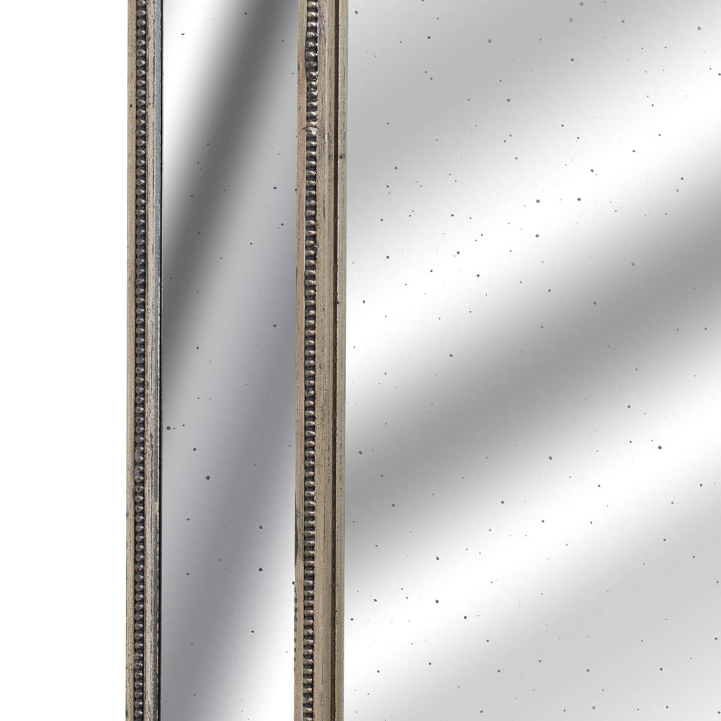 This is the Augustus Tall Cheval Wall Mirror, at 180cm high and 62cm wide this makes a practical yet ultimately sleek and stylish mirror. The hand painted antique metallic finish with the distressed glass ensures this piece is a timeless classic which can be used to make a statement in any interior.