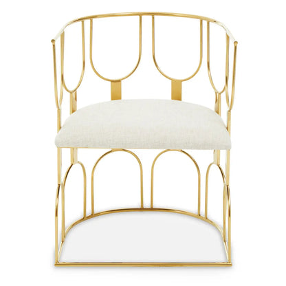 Elevate your living space with our Azalea chair, boasting a sleek, open-frame design in a rich gold finish. The sumptuous fabric seat is thoughtfully placed in the curved frame for both comfort and style, creating an elegant and luxurious addition to any room.