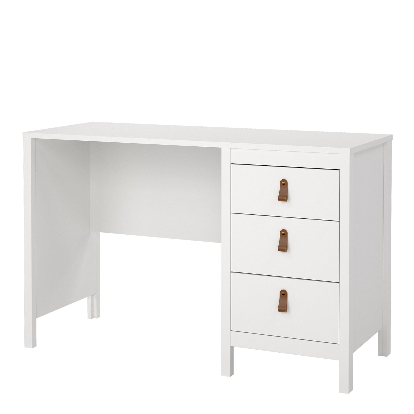 Introducing the Barcelona 3-Drawer Desk – a contemporary and stylish addition to your workspace. With its sleek design, elegant lines, and simple metal handles, this desk effortlessly enhances the aesthetics of any room. Choose the timeless black finish for a sophisticated and bold look that seamlessly complements your modern decor. Experience the perfect blend of functionality and sophistication with the Barcelona 3-Drawer Desk. Its three spacious drawers provide ample storage space for your office supplies, stationery, and other essentials, ensuring an organized work environment. The desk's smooth surface offers plenty of room for your computer, laptop, or writing materials. Whether you're working, studying, or pursuing creative endeavours, the Barcelona 3-Drawer Desk is a versatile and practical solution for your needs.