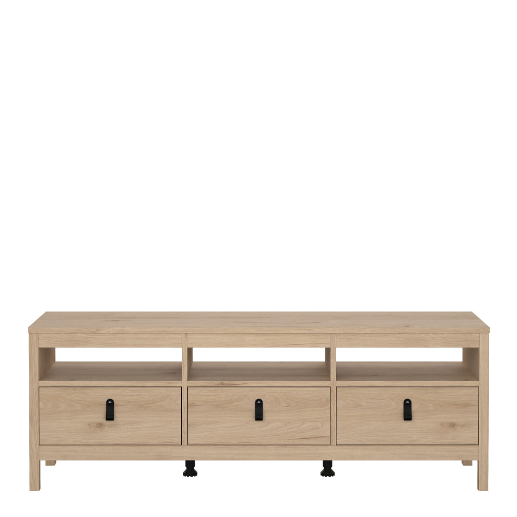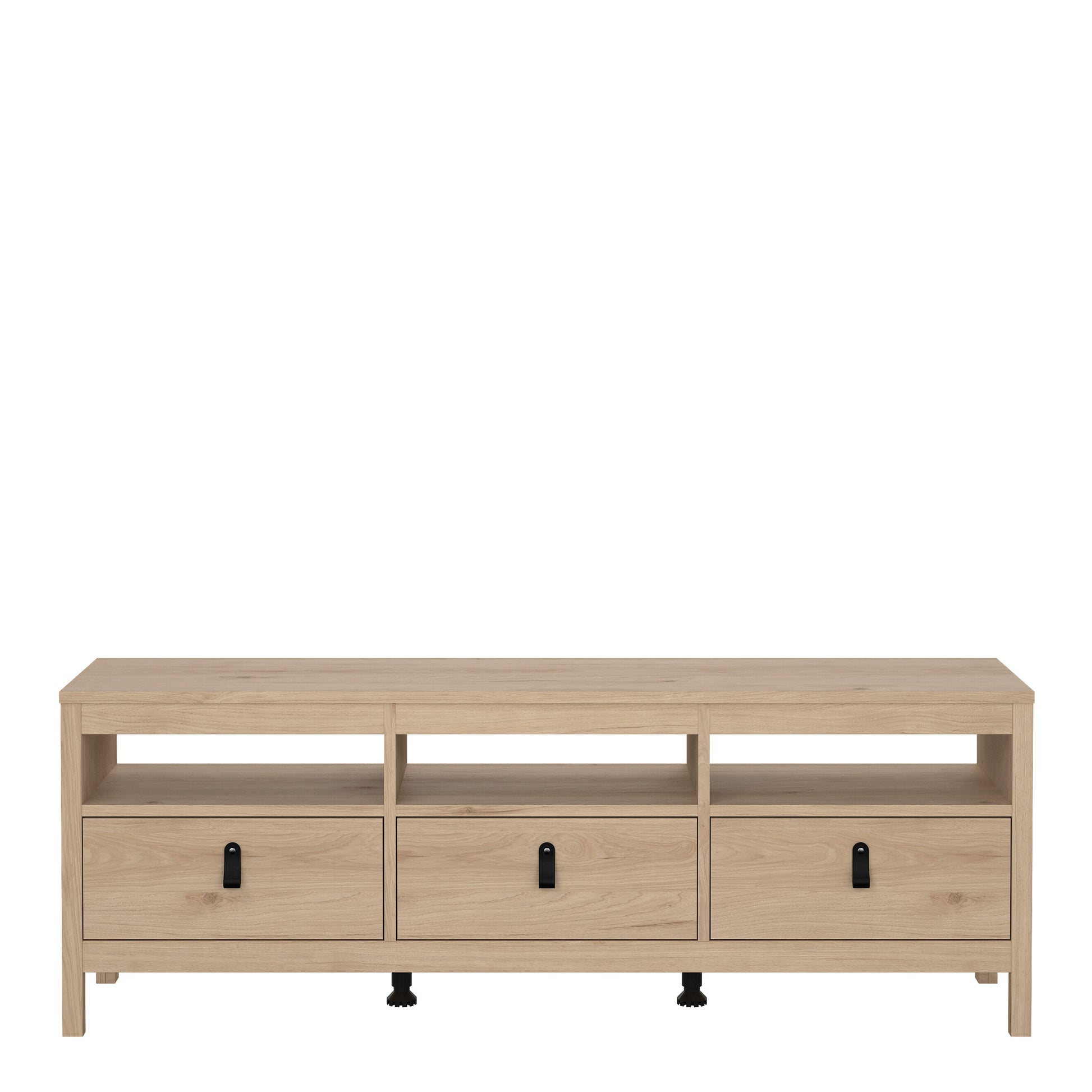 Upgrade your living room with the stylish Barcelona TV Unit. Featuring a Jackson Hickory Oak effect finish, this unit offers three spacious drawers for ample storage. The drawers are equipped with metal glide runners for smooth operation, and leather strap handles add a touch of modern elegance. Combining functionality and contemporary design, the Barcelona TV Unit is a perfect addition to any modern home.