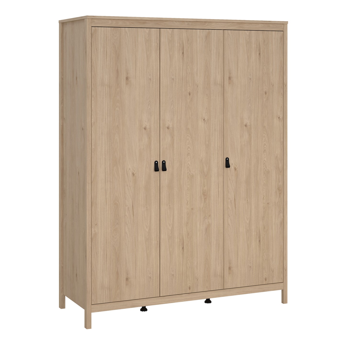 Enhance your bedroom with the stylish Barcelona Wardrobe. Featuring a Jackson Hickory Oak effect finish, this wardrobe offers generous storage space behind its three doors. Inside, you'll find a spacious hanging area, shelves, and drawers, perfect for organizing your clothing and accessories. With leather strap handles and a contemporary design, the Barcelona Wardrobe combines elegance and practicality, making it an ideal addition to any modern bedroom.