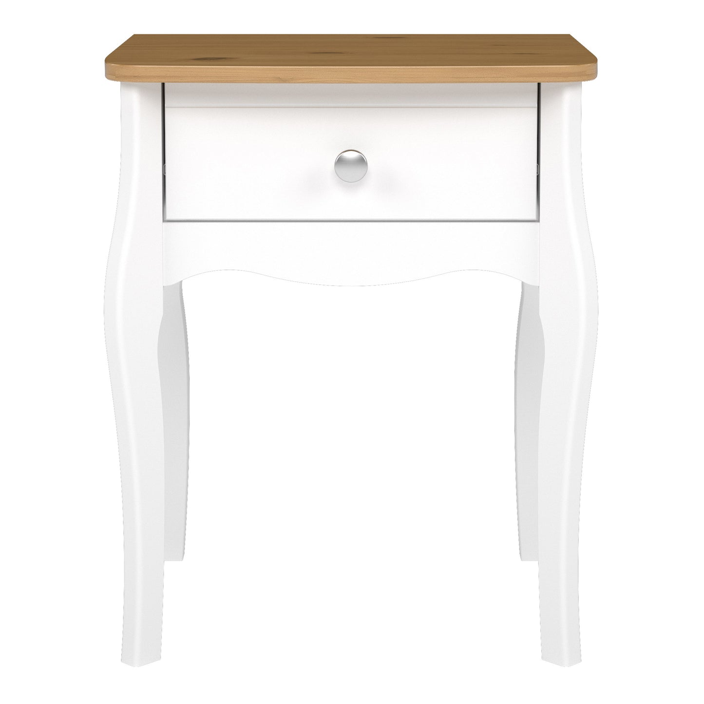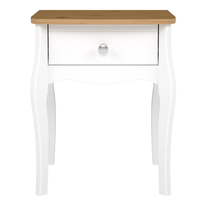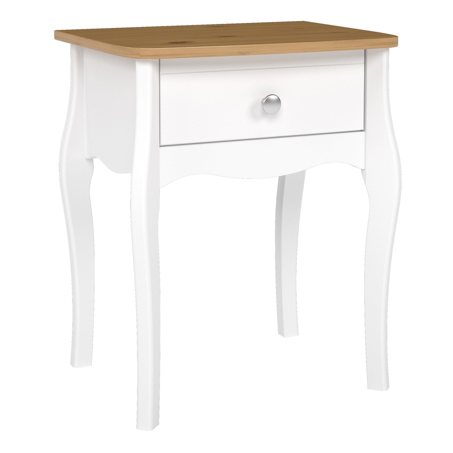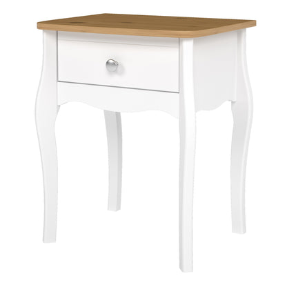 Introduce elegance to your bedroom with our Baroque one drawer nightstand in Pure White, inspired by the charming Provence style. This stunning piece features delicate detailing, a pristine white finish, and stainless steel handles that beautifully complement any room decor. With its spacious drawer, it offers ample storage space for your makeup, jewellery, or other essentials, keeping them tidy and easily accessible. Embrace the perfect blend of style and practicality with this captivating nightstand, adding a touch of sophistication to your bedroom ambiance.