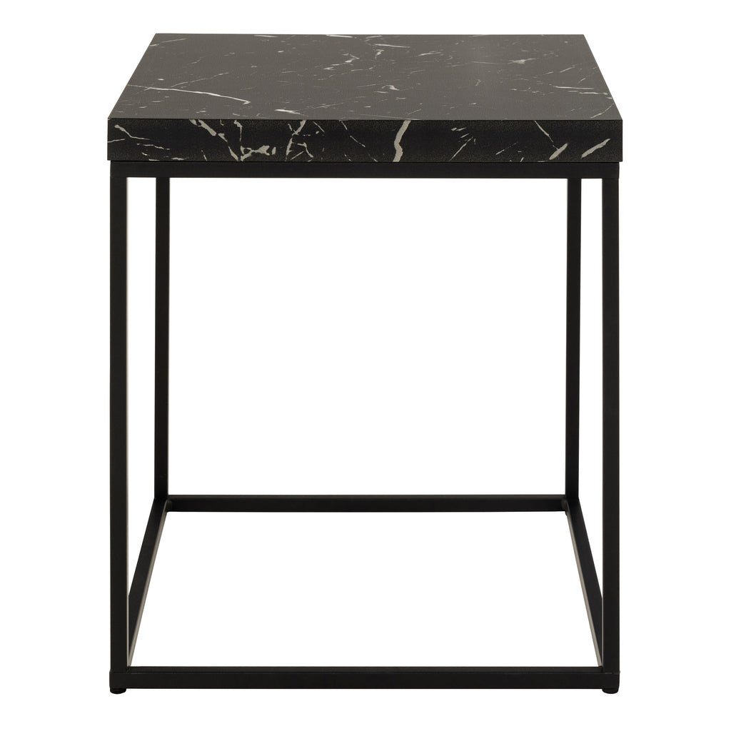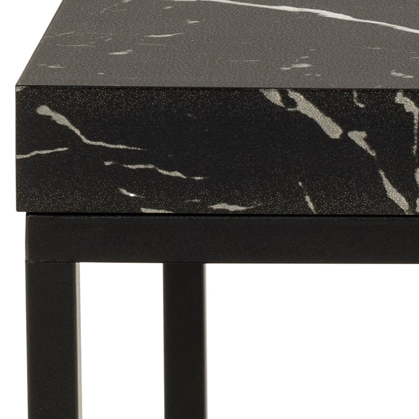 Revel in the sophistication of a square coffee table, featuring a luxurious black marble effect top, set upon a matte black steel base for a sleek, modern appeal. Perfect for contemporary living spaces.