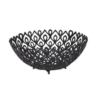 This is the Black Cast Large Lattice Bowl. A perforated aluminum display bowl with striking, contemporary pattern. This matt black item is sure to add instant impact wherever it's placed. Pair this vase with the smaller sized version in complementary pattern for a tiered height display.
