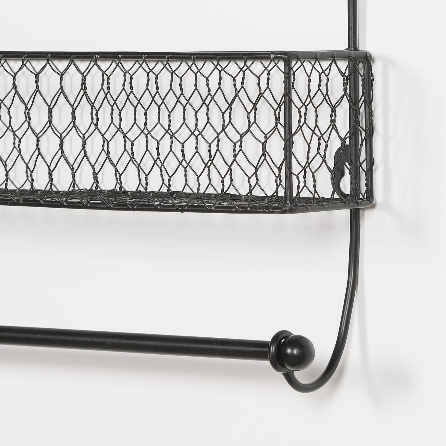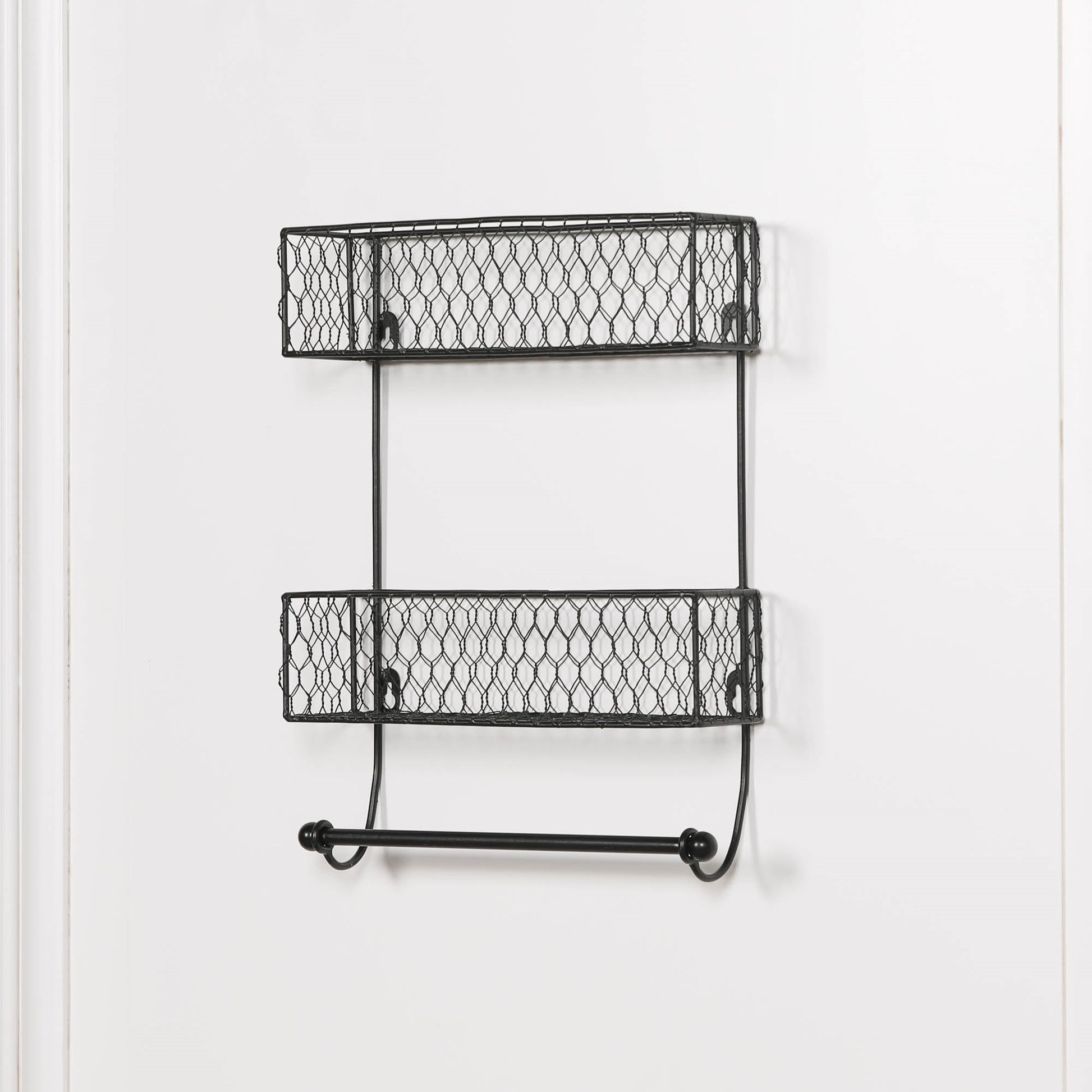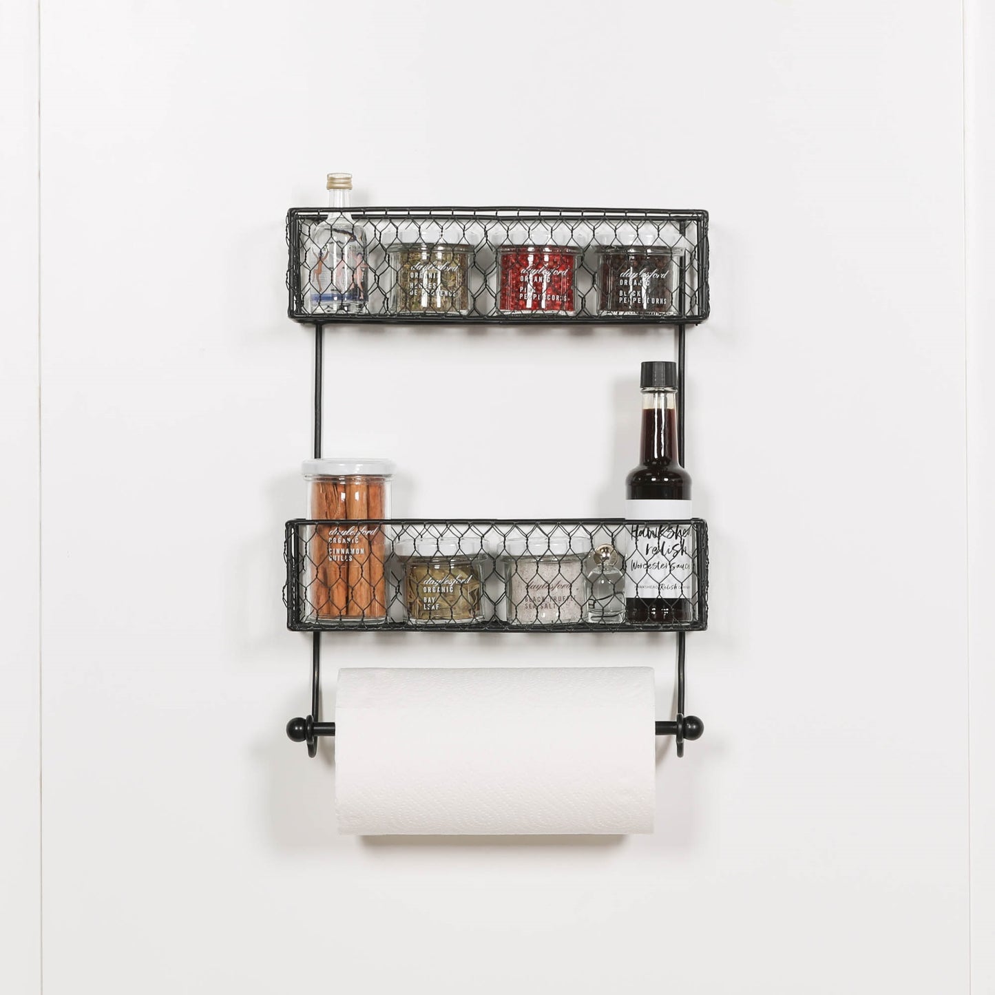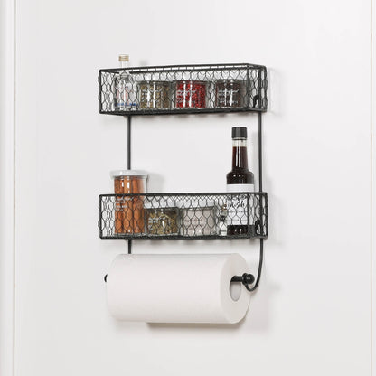 This Black Wall Spice Rack with Kitchen Roll Holder is a functional and space-saving addition to any kitchen. Made of durable materials, it can hold various sized spice containers and also serves as a convenient kitchen roll holder. Keep your spices organized and your paper towels within reach with this versatile product.