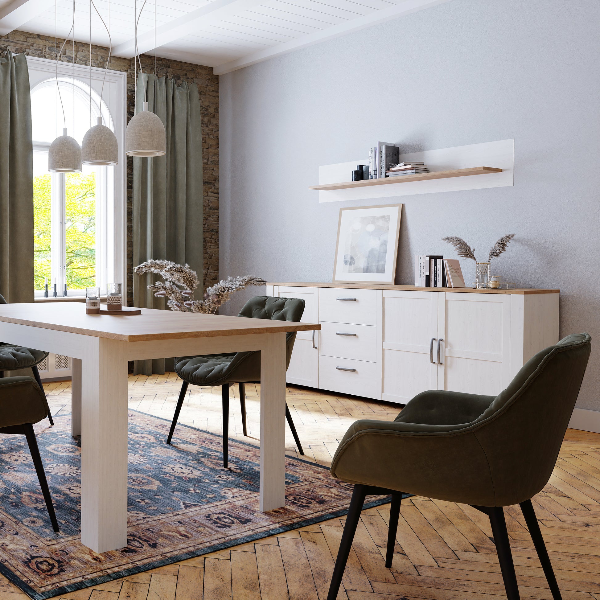 The Bohol collection draws inspiration from its timeless charm and rustic style, embracing its simplicity and natural elegance. What truly sets this collection apart from others is its exquisite decor - featuring three colourways with an Oak finish. The subtle elegance of the light Riviera Oak contributes by adding a focal point to each piece. Complete your Living or Dining room with this floating shelf. Available in a White & Oak, Grey & Oak or Navy & Oak.