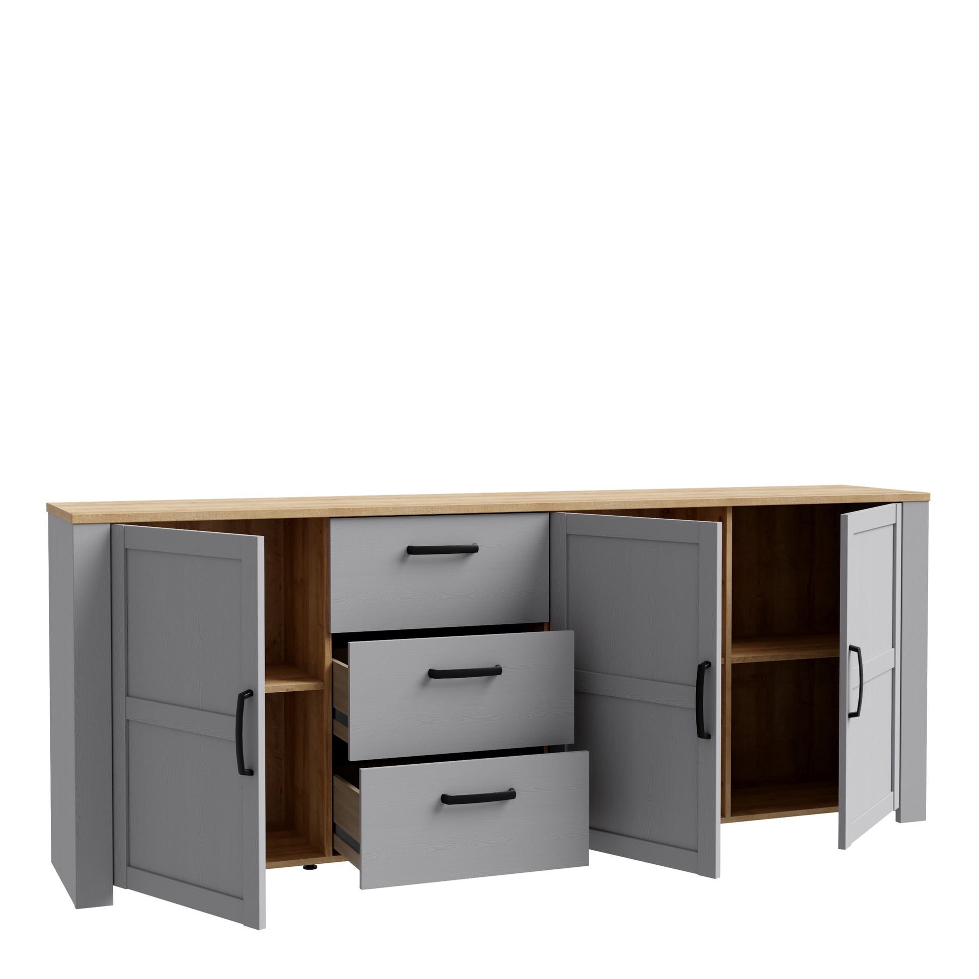 Bohol 3 Door 3 Drawer Large Sideboard in Riviera Oak/Grey Oak