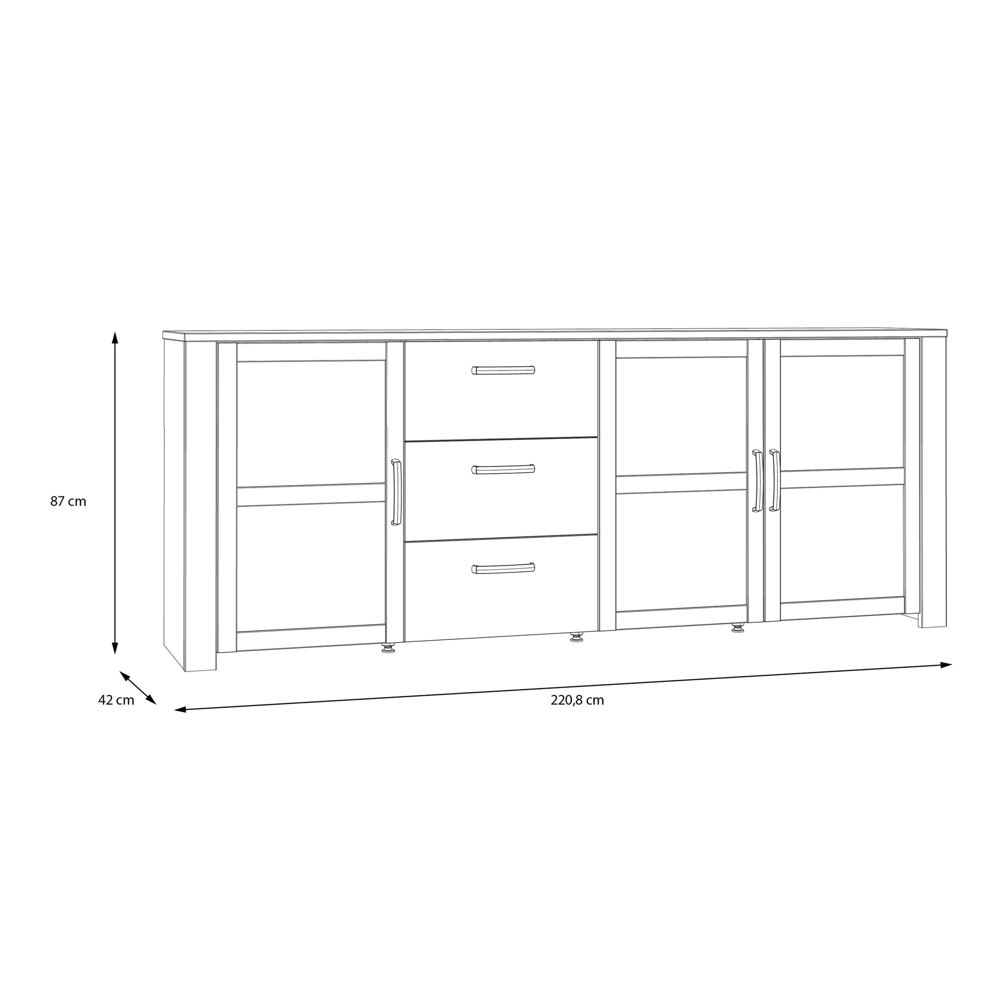 • Size in cm: W 220.8 x H 87 x D 42 cm