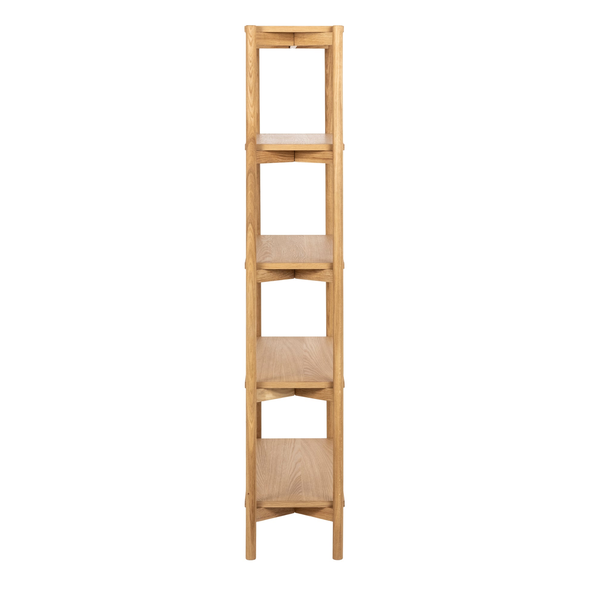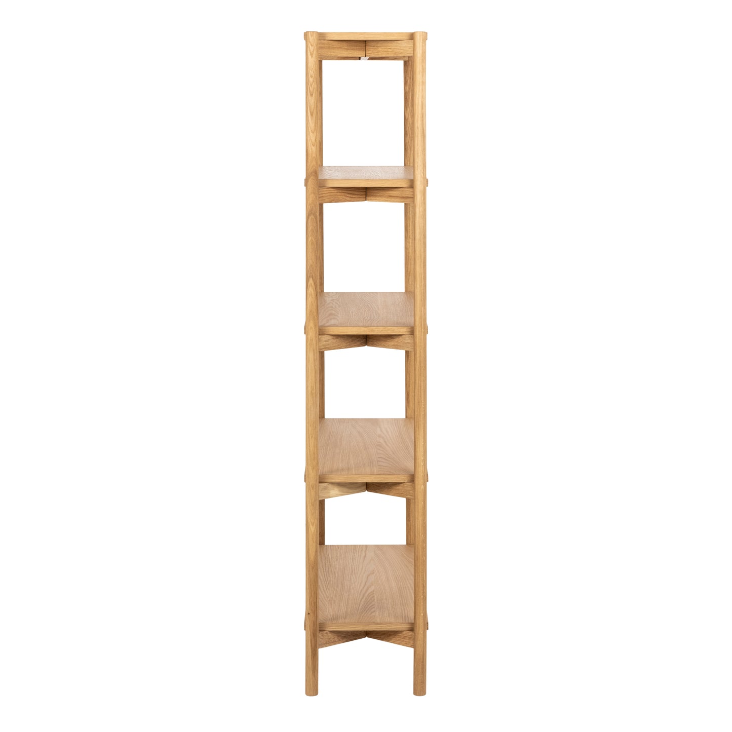 Step into a world of understated elegance with this bookcase, featuring a sturdy frame and base of oiled oak, paired with four ample shelves of oak veneer, ready to display your favorite reads and treasures