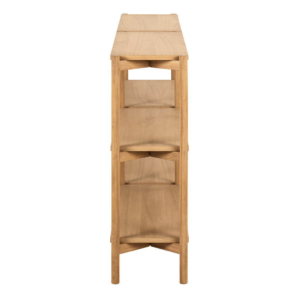 Step into a world of understated elegance with this bookcase, featuring a sturdy frame and base of oiled oak, paired with four ample shelves of oak veneer, ready to display your favorite reads and treasures
