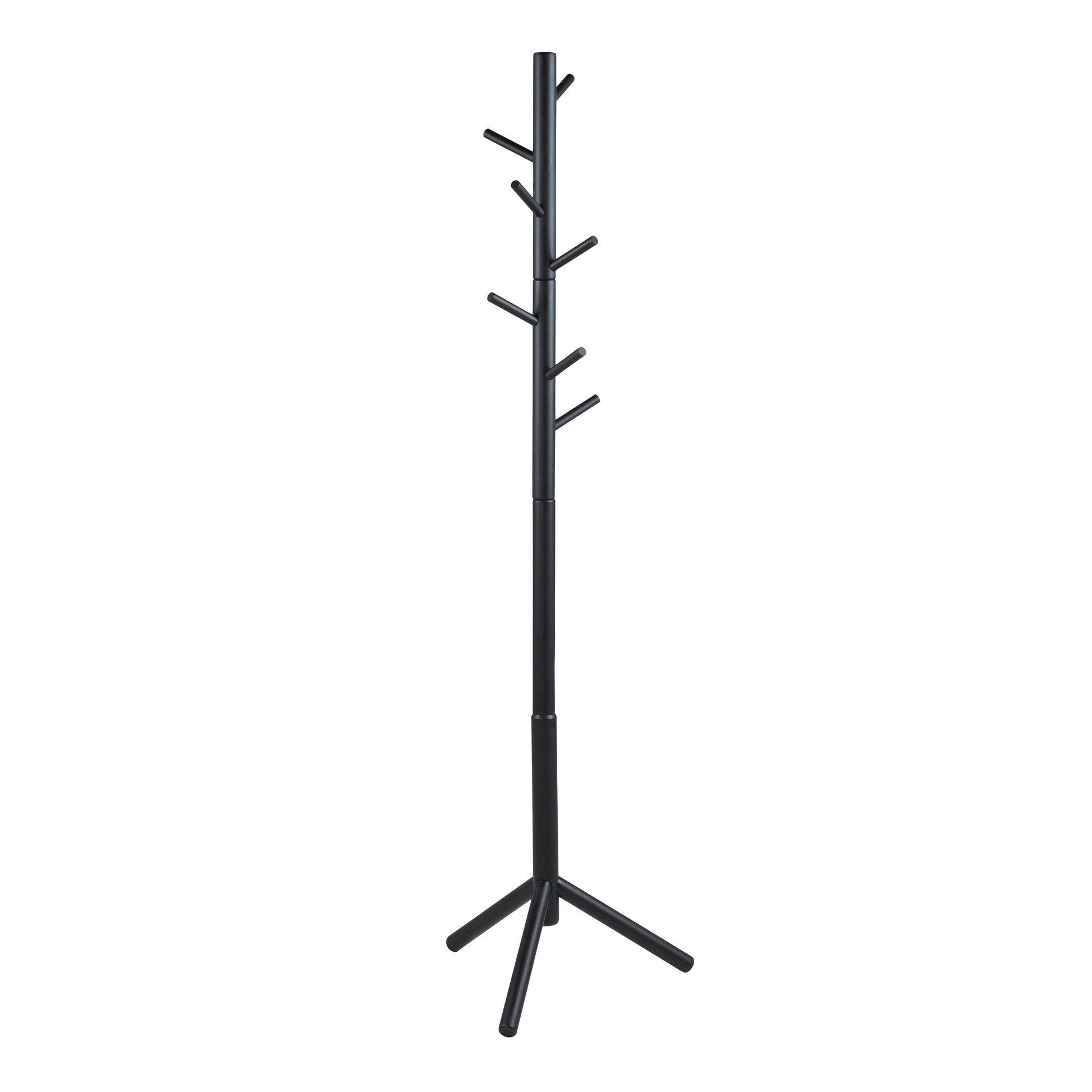 Welcome a touch of modern sophistication with the Bremen coat hanger, boasting a bold black NC lacquered rubberwood frame and base, complemented by unique asymmetrical details for a chic organizational solution.