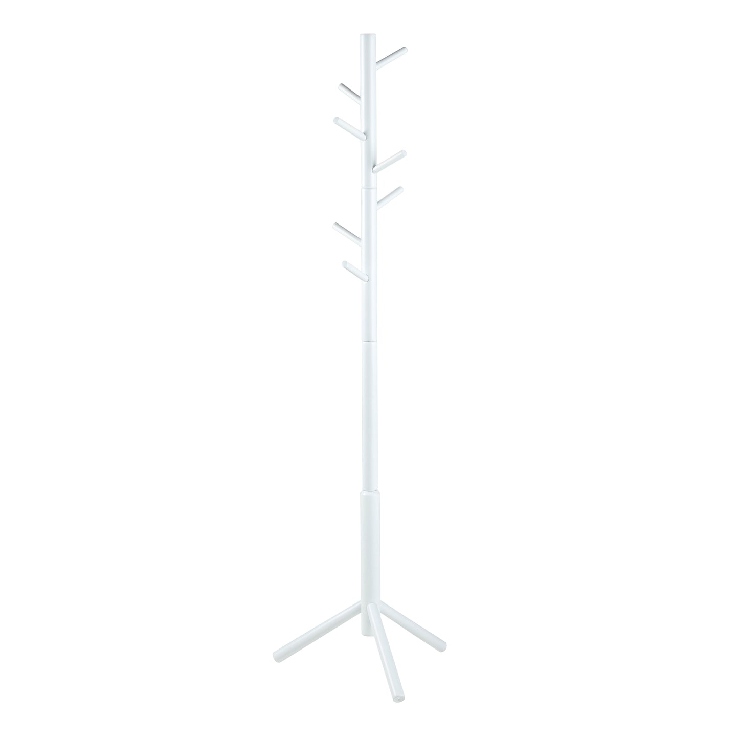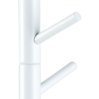 Enhance your entryway with our chic coat hanger, finished in white lacquered rubberwood. Its frame and base are accented with asymmetrical details, offering both style and practicality