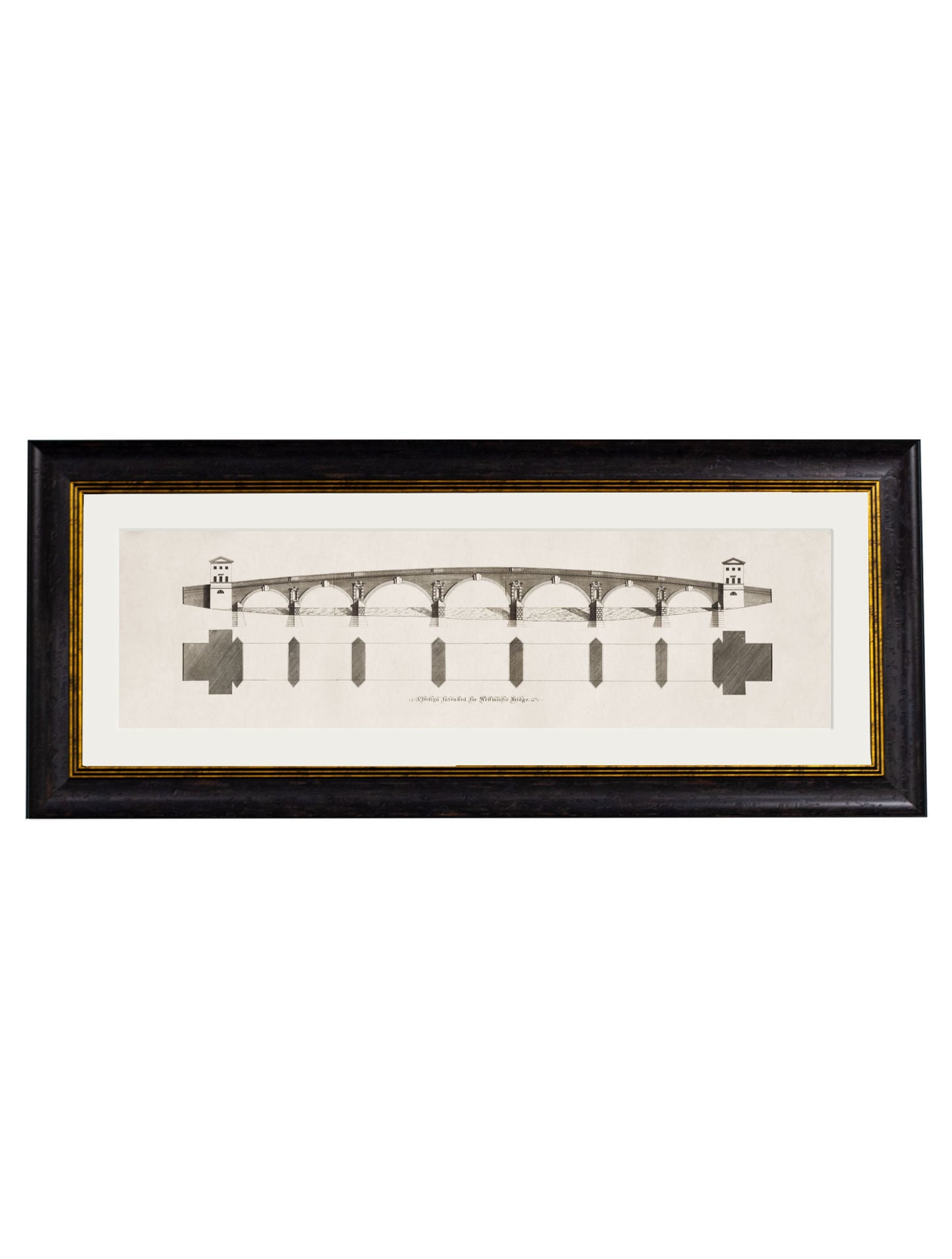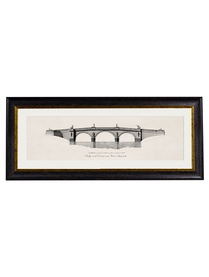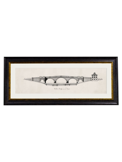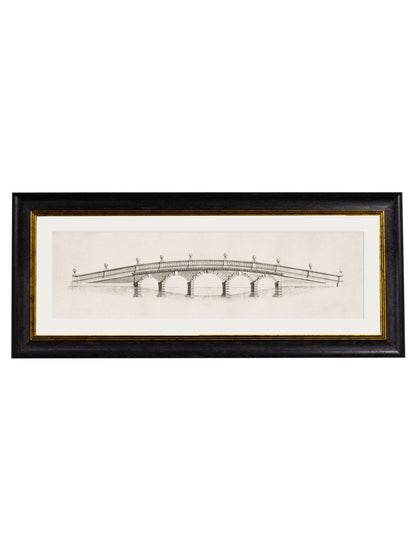 This beautifully detailed pair of prints brings back to life architectural elevation engravings from the first half of the 18th century. Depicting bridges designed by James Paine, they’ve been digitally remastered here in our Lancashire studio and printed and framed in house in our classical-style elongated frames.