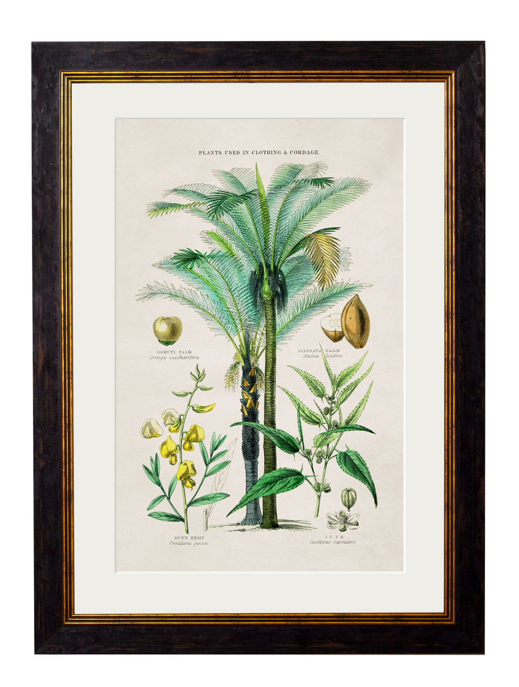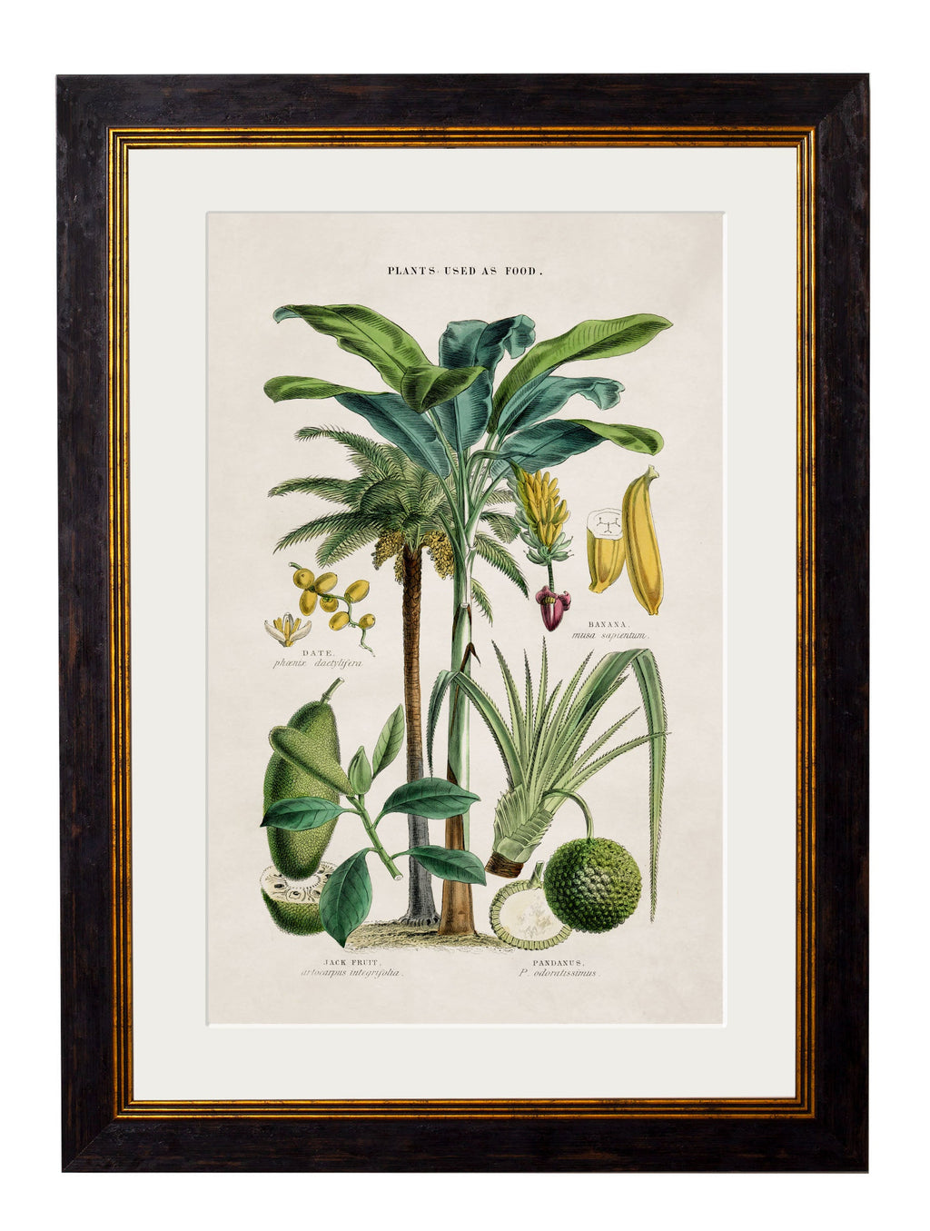 Evoking the golden age of exploration, this exquisite pair of prints from the latter part of the 19th century references a number of bright tropical plants used for food and clothing, including palm trees, banana, jack fruit and hemp. Perfect for bringing a touch of the exotic to any room, these illustrations have been digitally remastered here in our Lancashire studio to bring their original hand-colouring back to life.