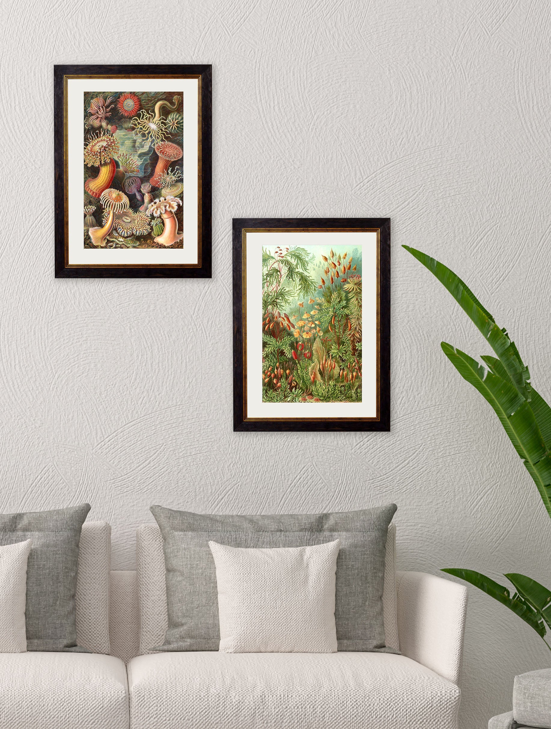 This exquisitely colourful print represents sea anemones and mosses from Ernst Haeckel’s Kunstformen der Natur (1904). This vibrant print is full of bright colour and detail, which we’ve brought back to life through a meticulous digitally restoration process here in our Lancashire studio ready to add timeless style to any tastefully finished room.