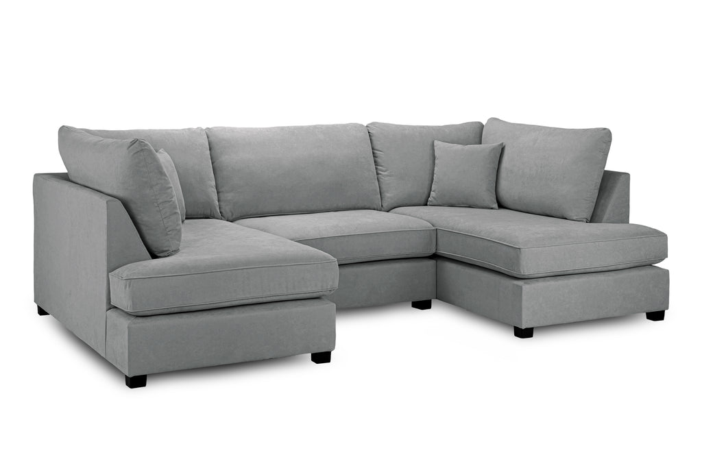 The Carnaby Sofa in grey offers the perfect haven for good times and comfort. With its U-shaped design, luxurious polyester fabric, and removable back cushions, this sofa invites you to sink in and never leave. Enjoy endless good times and make it the centrepiece of your happy moments.