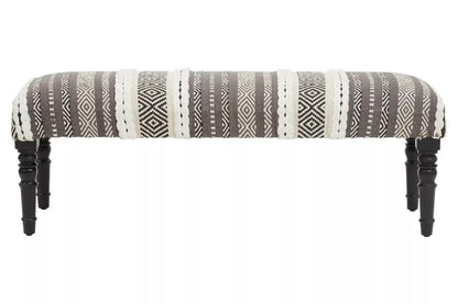 Indulge in the luxurious comfort and style of our Cefena Grey And White Bench. With a sturdy wooden frame that exudes a bohemian charm and a cushioned top that provides unparalleled comfort, this chic and elegant piece will elevate any room in your home. The effortlessly chic grey and white fabric adds a touch of sophistication and exclusivity, creating a truly unique and timeless piece. Experience the perfect combination of form and function with our Cefena bench.