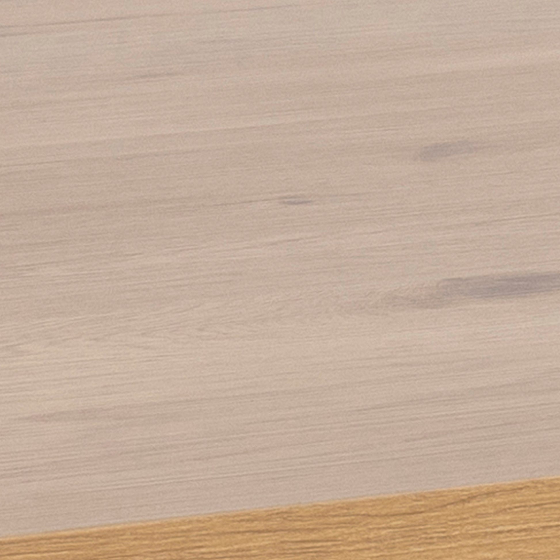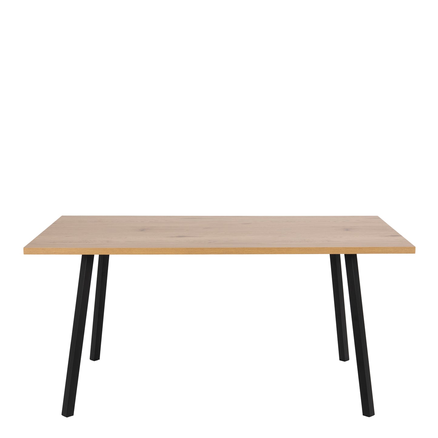 Discover the charm of this rectangular dining table, which combines the a rustic appeal of matt wild oak effect with the industrial edge of a matt black rough powder-coated steel base. Its robust design and aesthetic versatility make it an ideal choice for any contemporary dining space