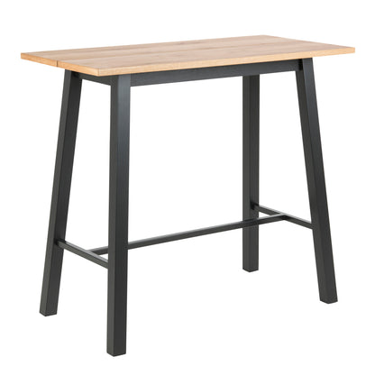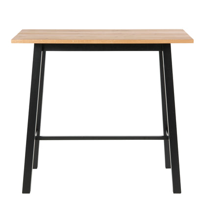 Add a touch of rustic elegance to your space with this rectangular bar table. The top is finished in a rich wild oak oiled veneer, complemented by a matte black base. Its plank design adds a unique character, perfect for creating a cozy and inviting atmosphere