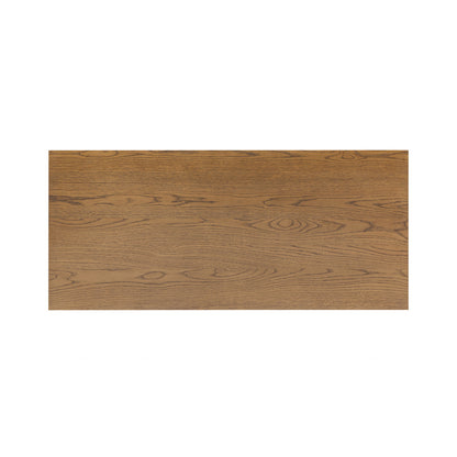 Indulge in the luxurious aesthetic of the Evie Ribbed Walnut Desk, crafted from oak, oak veneer, and MDF with a timeless aged oak and walnut finish. Admire the ribbed front panels, two drawers with soft close push mechanisms, and two doors with shelving inside. Each drawer glides smoothly on metal runners, highlighting the beautiful visible grain of this exquisite piece.