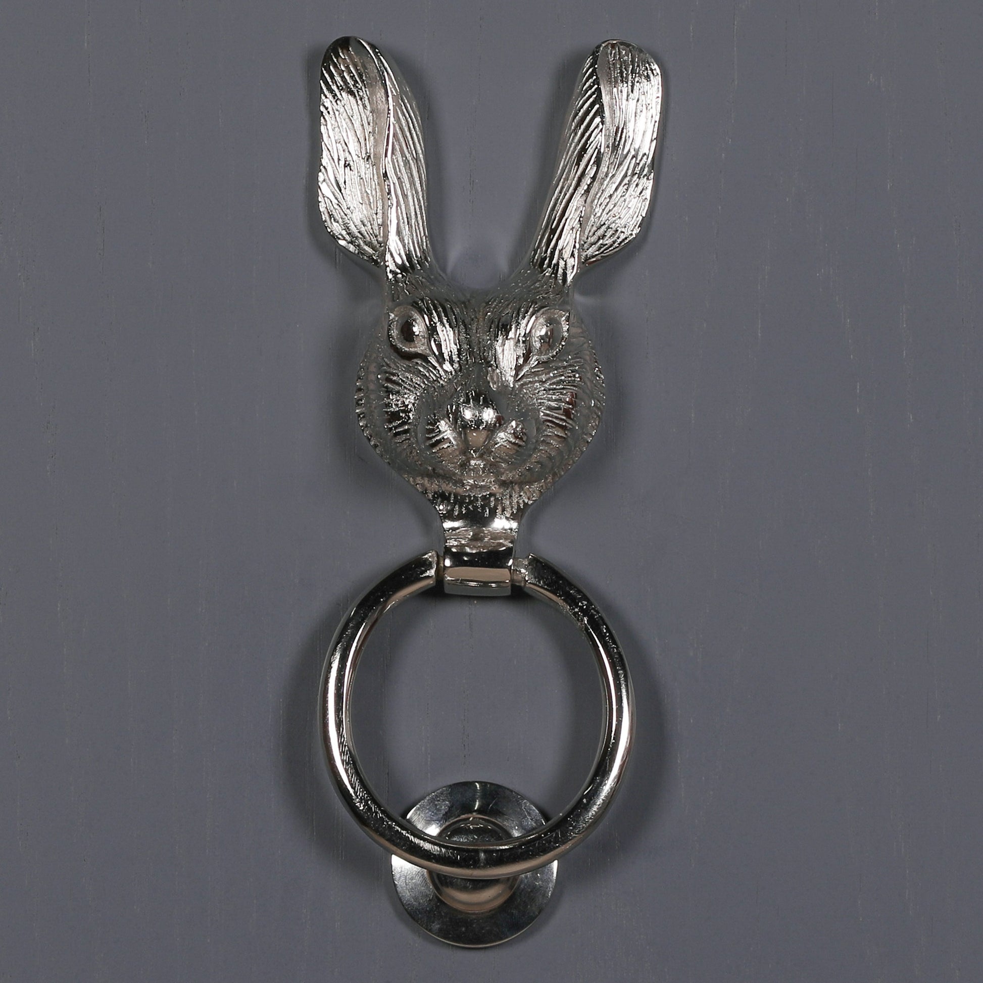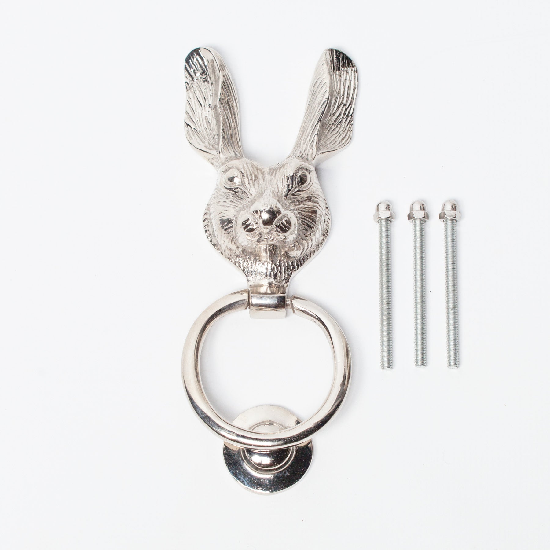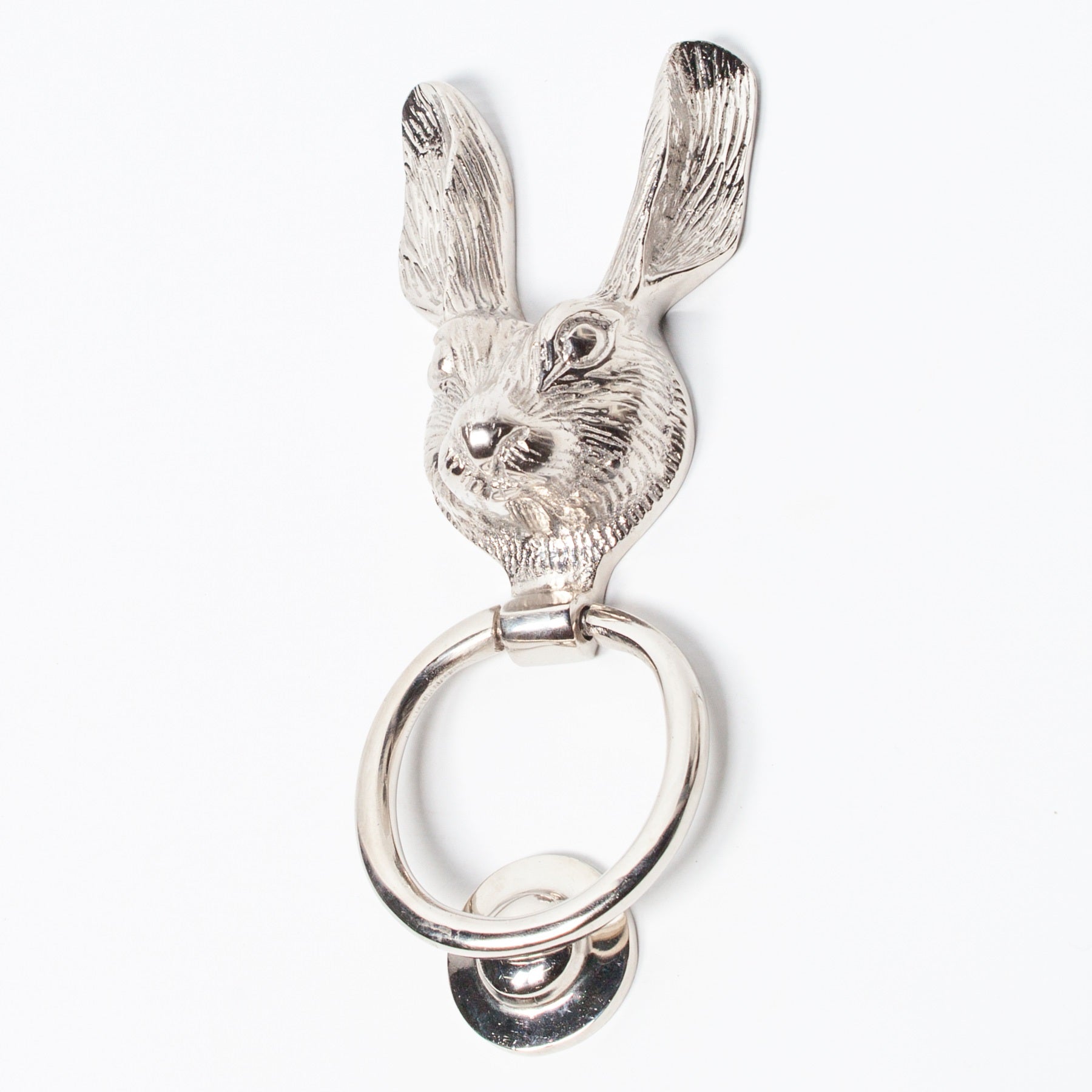 Introducing our Chrome Rabbit Door Knocker, a luxurious addition to any entrance. Crafted from high-quality chrome, this door knocker features a charming rabbit design, adding a touch of whimsy to your home. Elevate your door with this exclusive, sophisticated piece that is sure to make a statement.