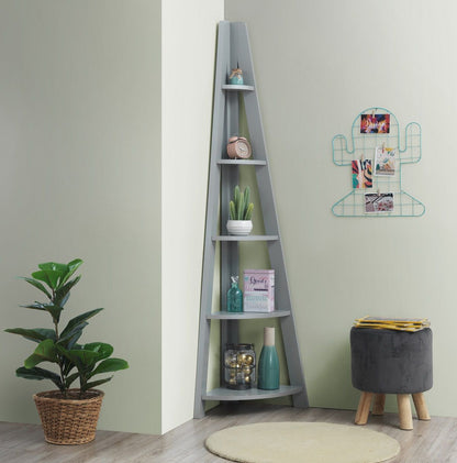 The Riva corner ladder shelving unit is a contemporary design in a modern Grey finish.