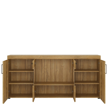 A fuctional and spacious sideboard - perfect for the dining or living room. Featuring a glazed front for family trinkets. For the lovers of natural wood, this range offers you the oppotunity to enjoy the charm of wooden furniture at an affordable price. Made from high quality MDF in the colour of grandson oak, which looks just like natural timber. An additional feature is the beautiful antique metal handles which gives a timeless elegance to the collection.