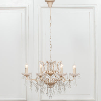 Indulge in luxurious lighting with our Cream 8 Branch Shallow Cut Glass Chandelier. Its shallow cut glass branches exude elegance and sophistication, while its cream color adds a touch of warmth to any room. Elevate your space with this exclusive, artful masterpiece.