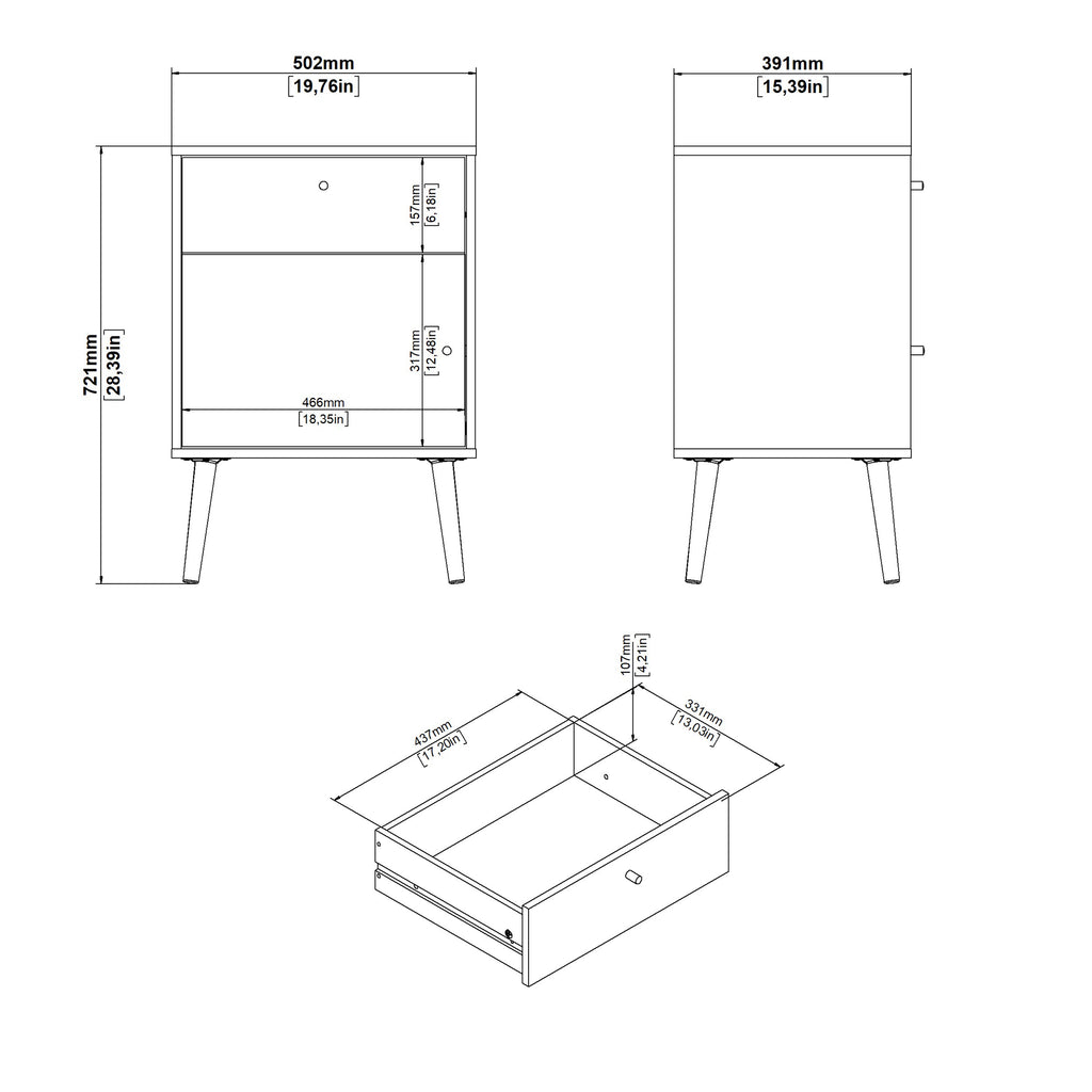Cumbria Nightstand 1 Door + 1 Drawer Dark Grey