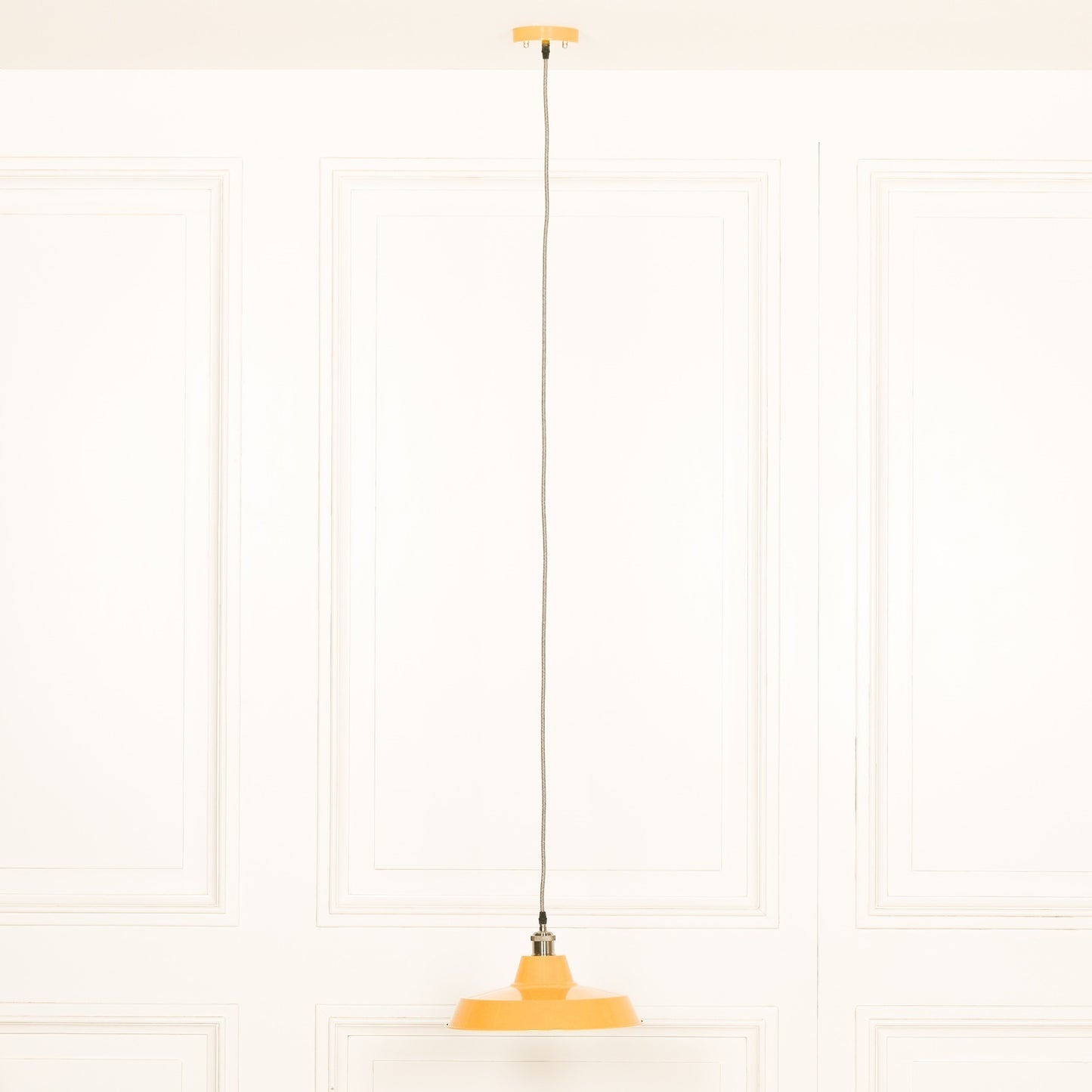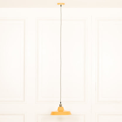 Illuminate your space with the sophistication and exclusivity of our Factory Style Mustard Yellow Enamel Painted Pendant Light. Crafted with a 36cm diameter, this premium light features a unique factory style design and a beautiful mustard yellow enamel finish, adding a touch of luxury to any room.