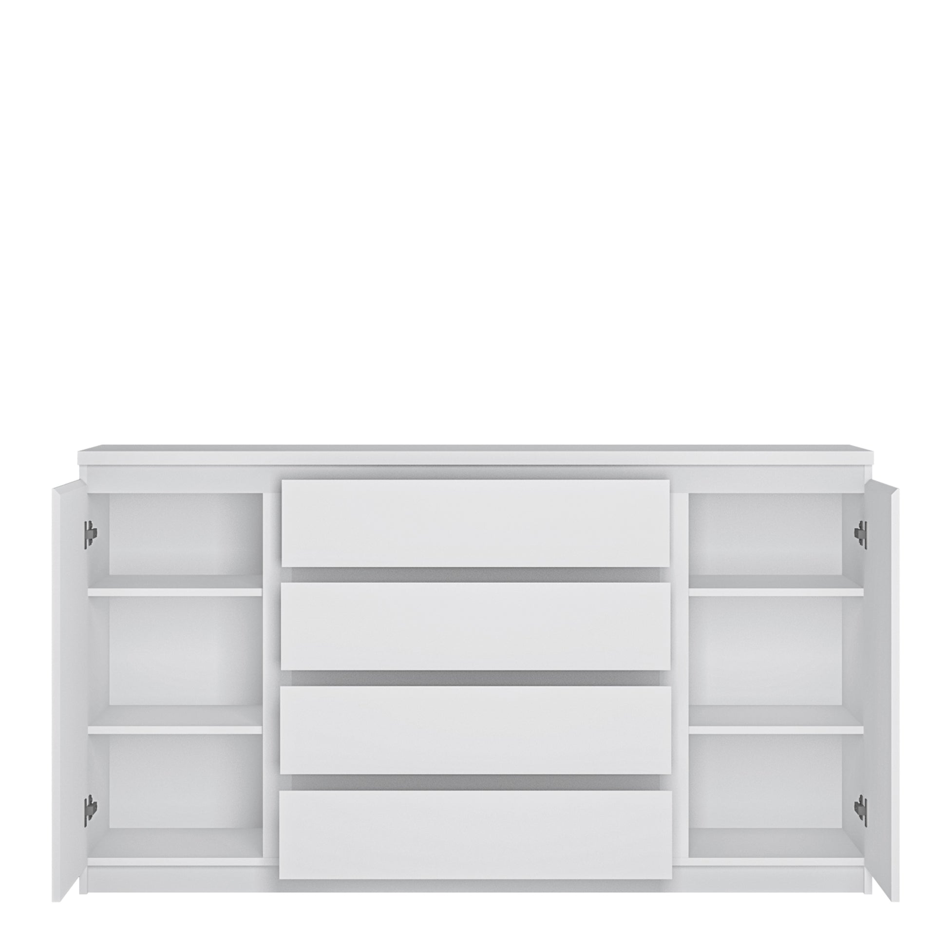 The long chest of drawers from the Fribo collection is a piece of furniture for people who value functionality combined with an interesting design. Its design is well thought out, it will allow you to store many things, inside there are four spacious drawers and shelves in the closed part. A 165.4 cm long table top can be used to display your favorite accessories or to store small items in decorative boxes. The chest of drawers from the Fribo collection is equipped with a modern handle-free system, which increases the convenience of using the furniture, and full extension guides that allow the drawer to be pulled out to the very end. The white chest of drawers offers countless possibilities to match with your favorite colors of accessories. The program is available in two color versions: Alpine White and Golden Ribbeck Oak.