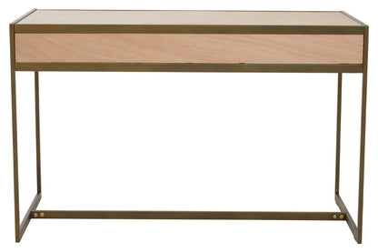 Crafted from a timeless oak veneer finish, the wooden top and drawers exude sophistication. The steel frame, finished in brushed brass, adds a touch of monochromatic luxury to the overall design.