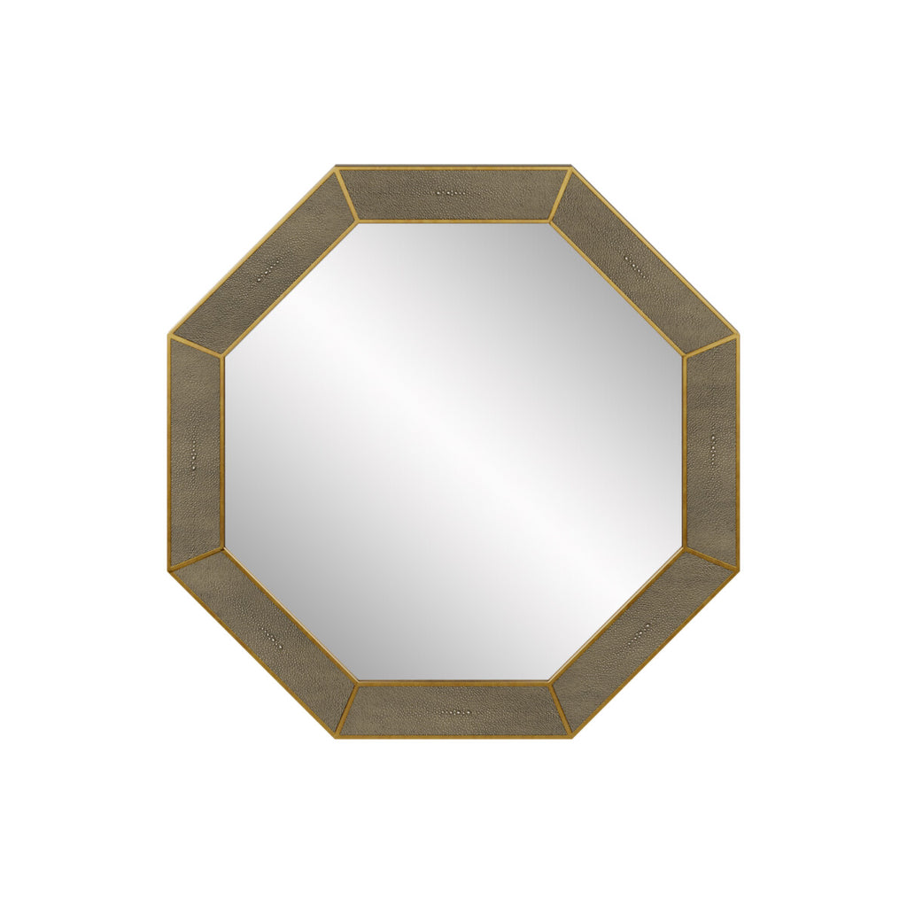 Elevate your space with our stunning Raphia Mirror Octagon Grey Shagreen. Adorned with a faux shagreen finish and antique style brass surround, this elegant octagonal mirror exudes a sense of luxury and sophistication. Perfect for adding a touch of refinement to any room, it is a must-have for those who appreciate the finer things in life.